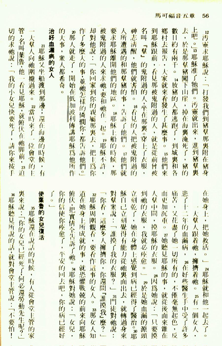 1976年圣经新译本新约 马可福音 5 章 12 节到 5 章 36 节