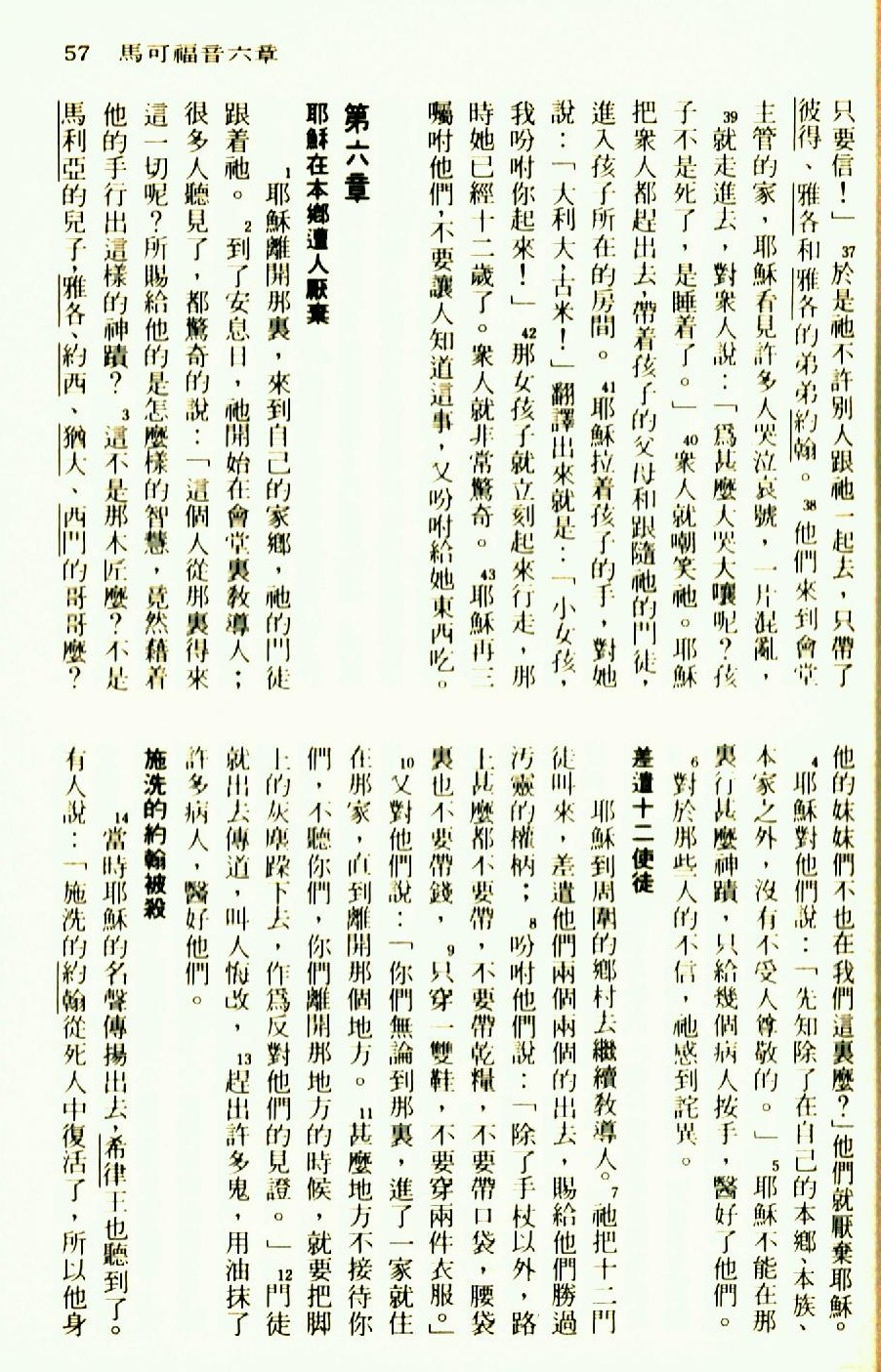1976年圣经新译本新约 马可福音 5 章 37 节到 6 章 14 节