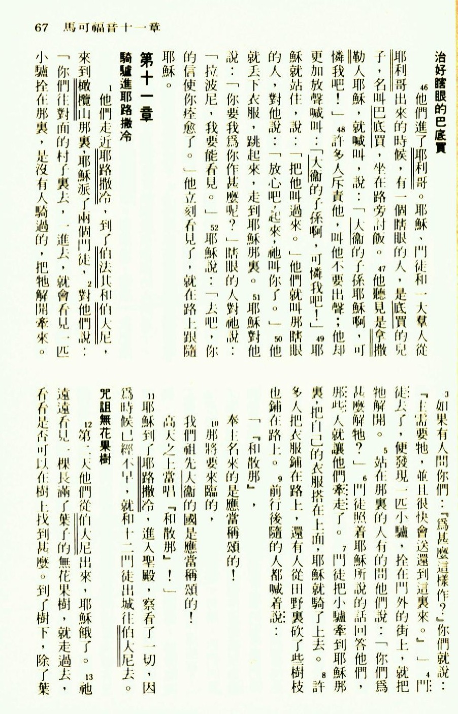 1976年圣经新译本新约 马可福音 10 章 46 节到 11 章 13 节