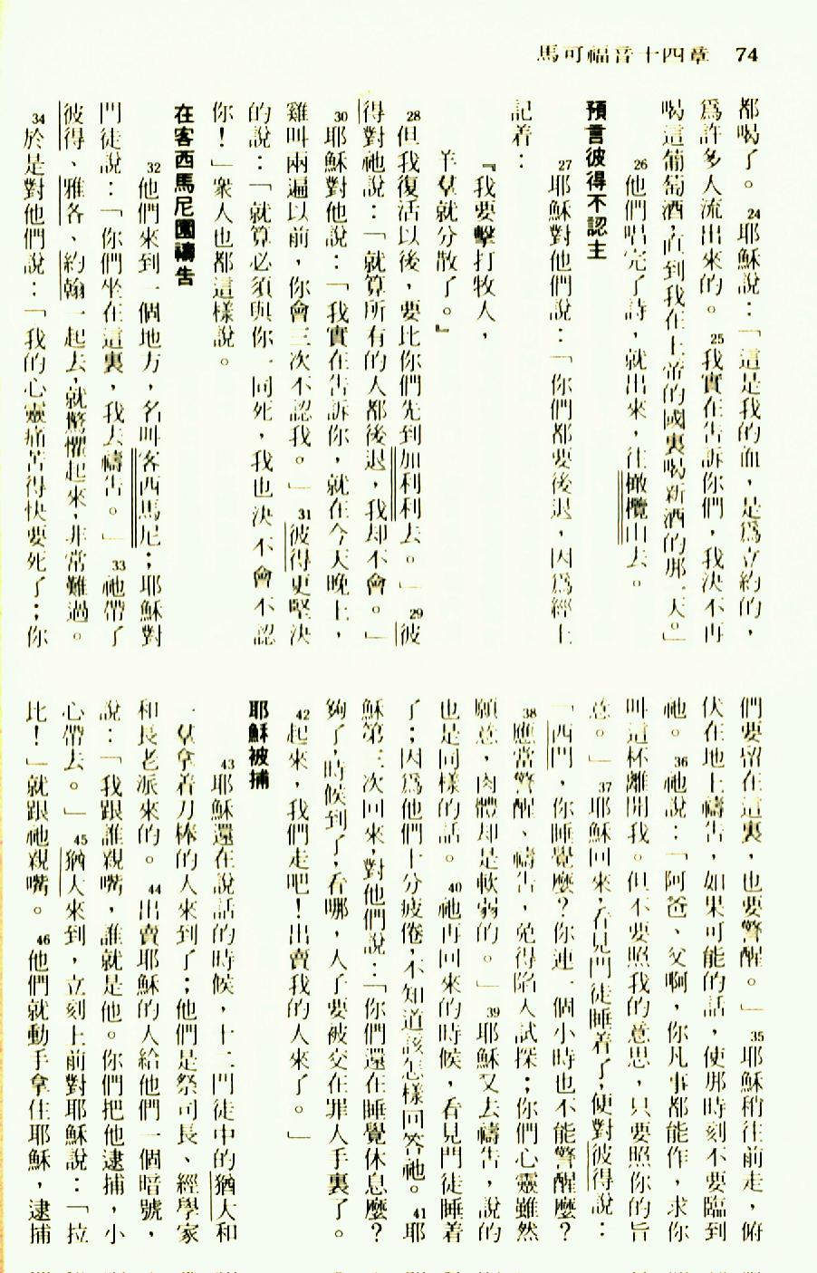 1976年圣经新译本新约 马可福音 14 章 24 节到 14 章 46 节