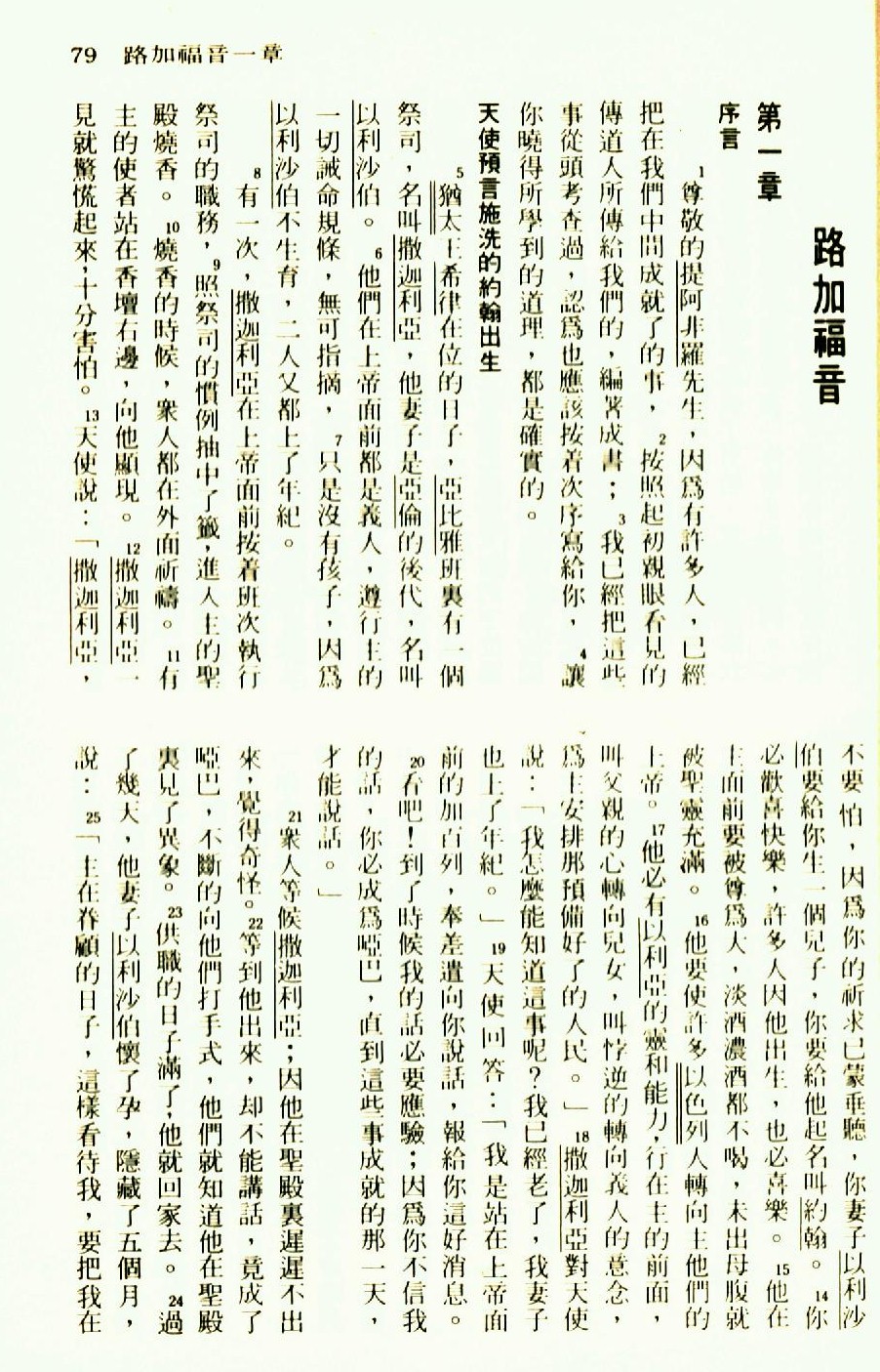 1976年圣经新译本新约 路加福音 1 章 1 节到 1 章 25 节