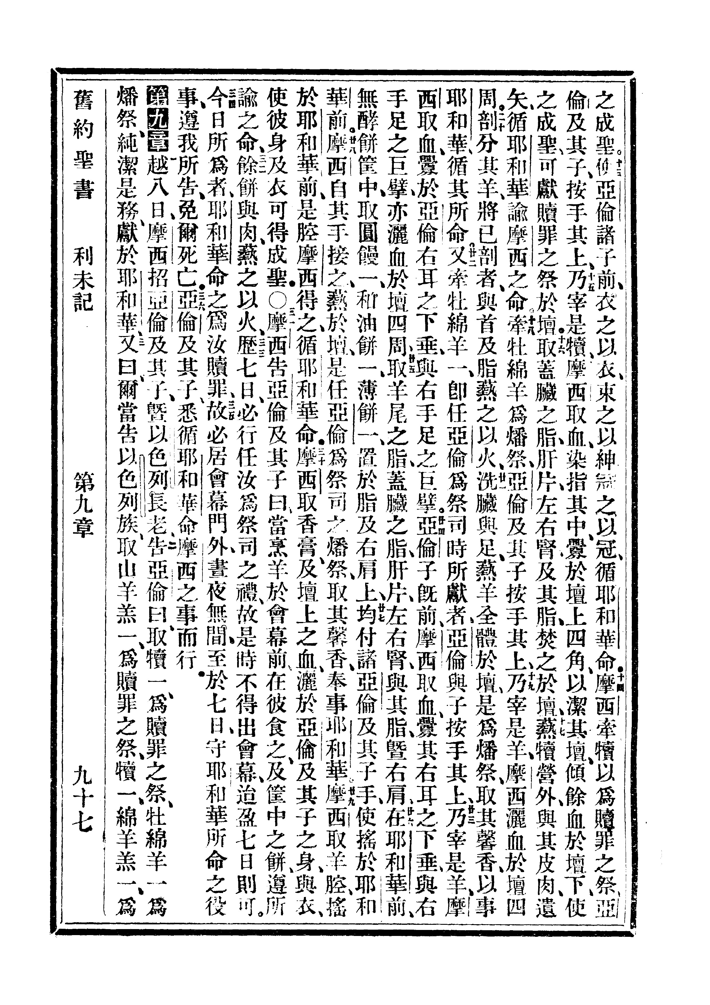 1910年委办译本 利未记 8 章 13 节到 9 章 3 节