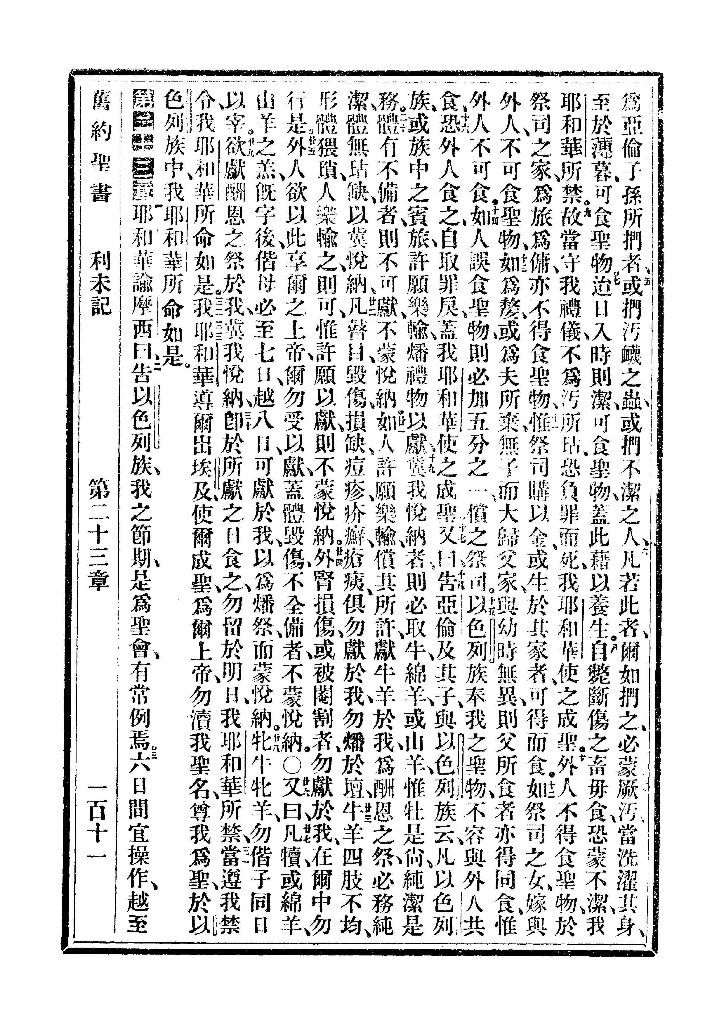 1910年委办译本 利未记 22 章 5 节到 23 章 3 节