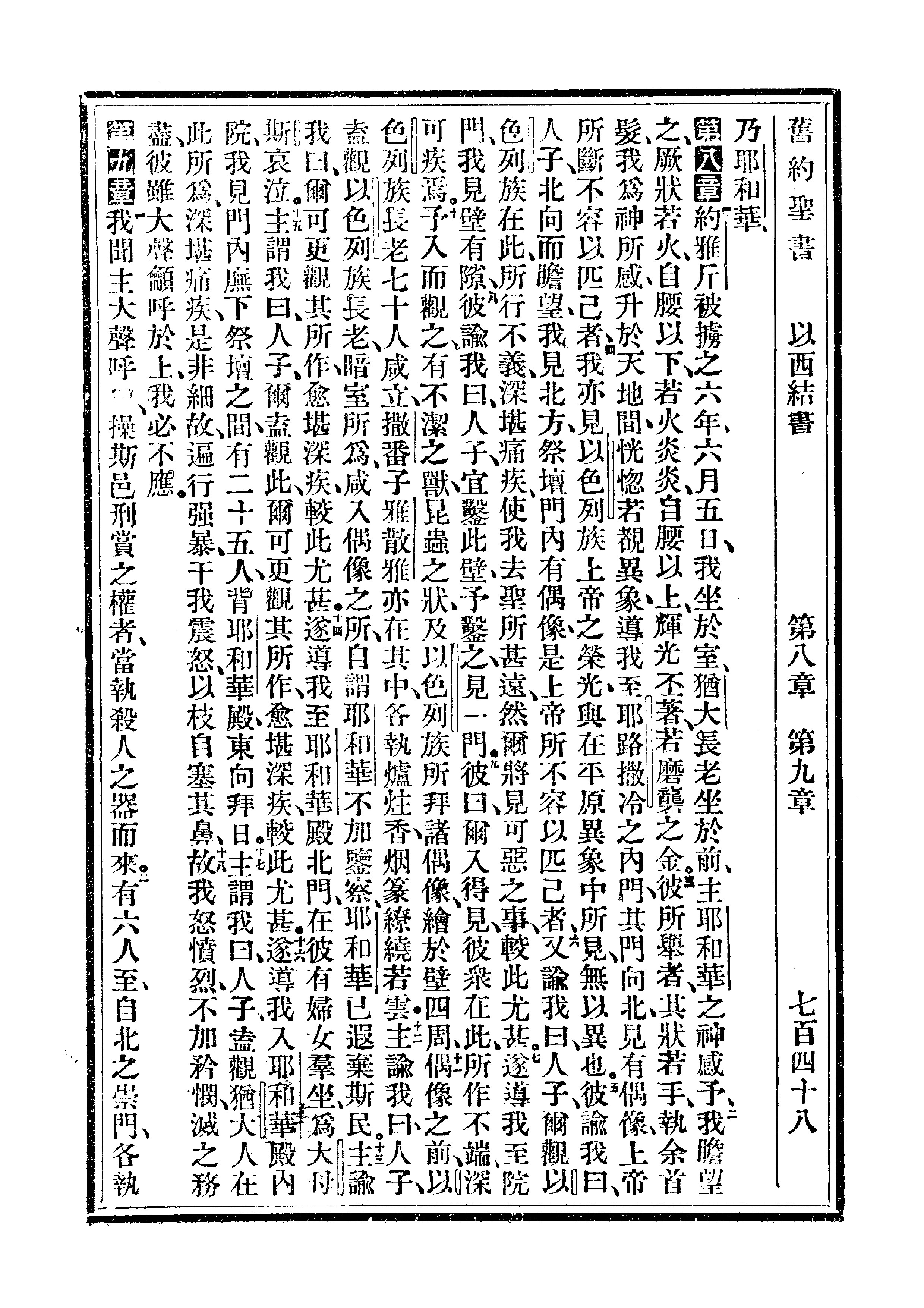 1910年委办译本 以西结书 8 章 1 节到 9 章 2 节