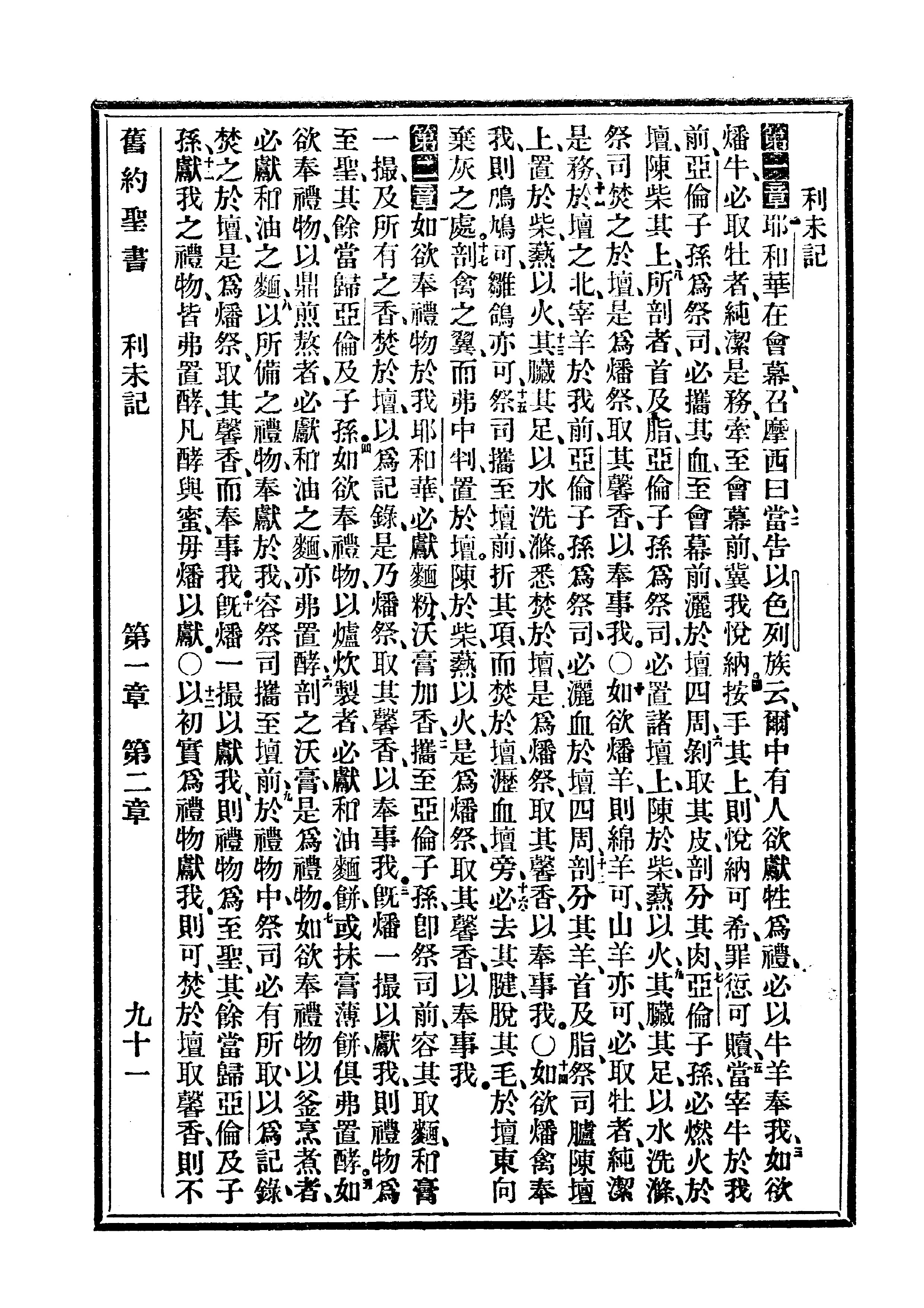 1910年委办译本 利未记 1 章 1 节到 2 章 12 节