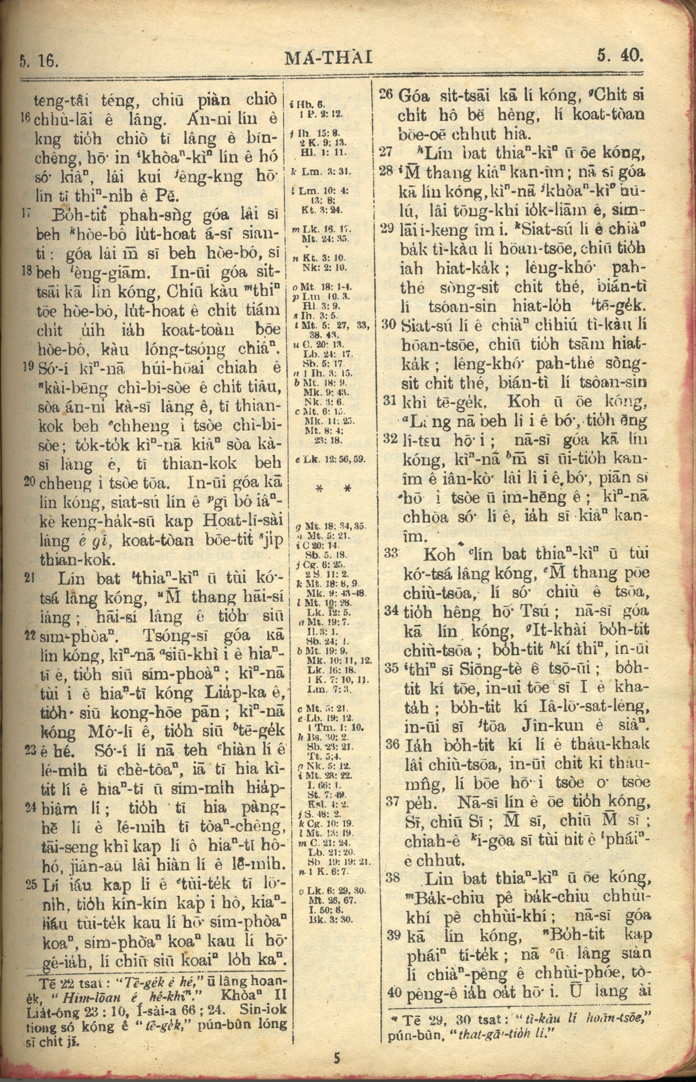 1957年巴克礼全罗台语圣经串珠版 马太福音 5 章 16 节到 5 章 40 节