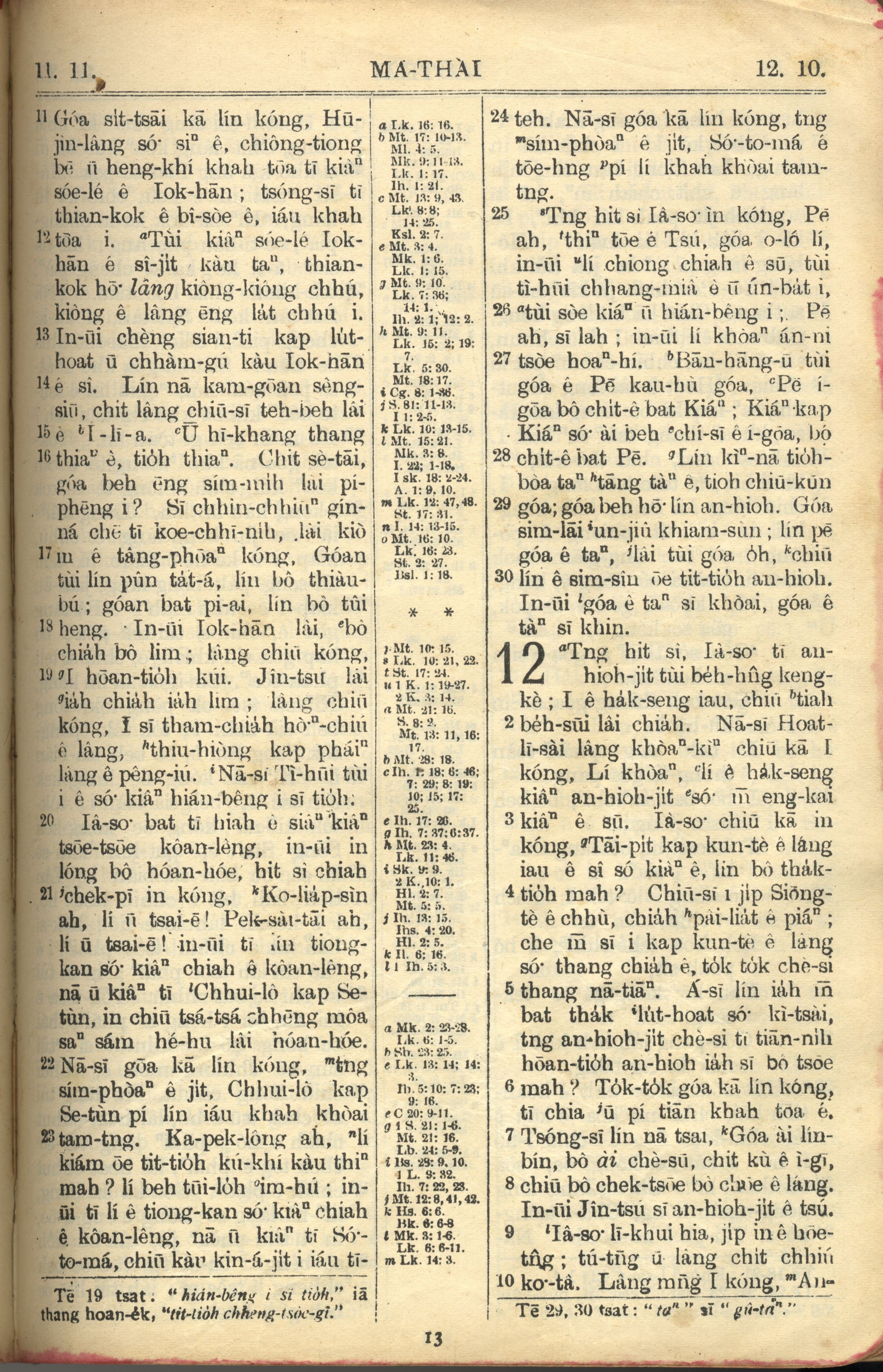 1957年巴克礼全罗台语圣经串珠版 马太福音 11 章 11 节到 12 章 10 节