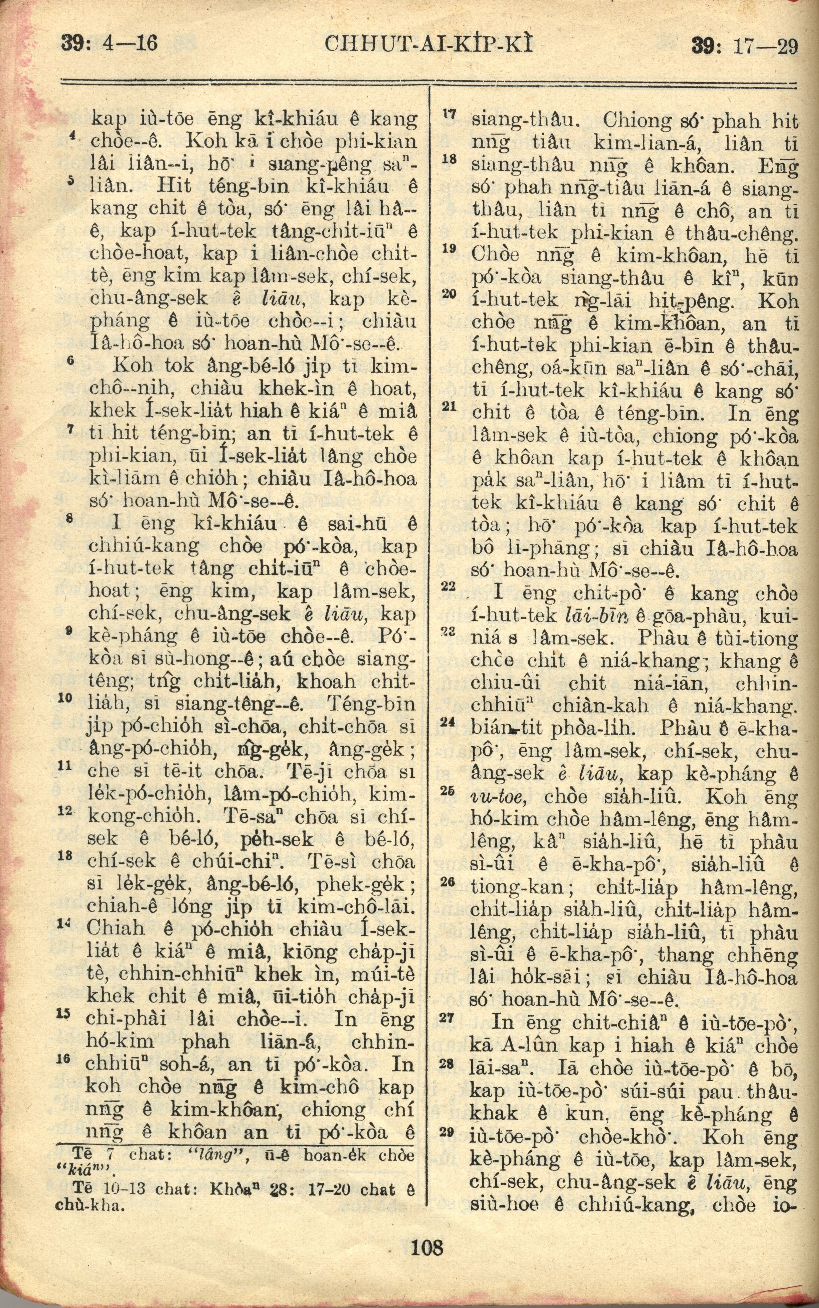 1957年巴克礼全罗台语圣经串珠版 出埃及记 39 章 4 节到 39 章 29 节