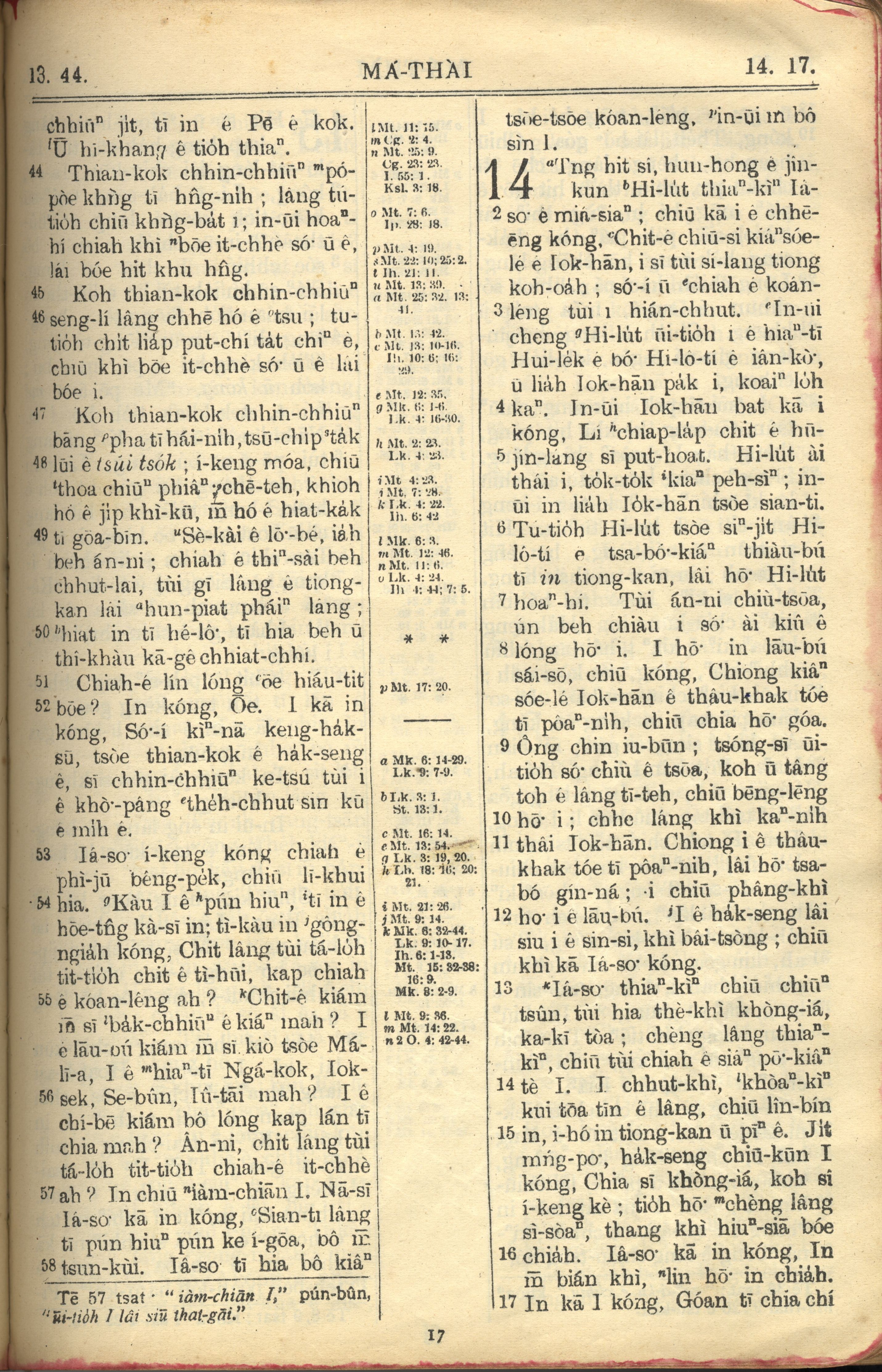 1957年巴克礼全罗台语圣经串珠版 马太福音 13 章 44 节到 14 章 17 节