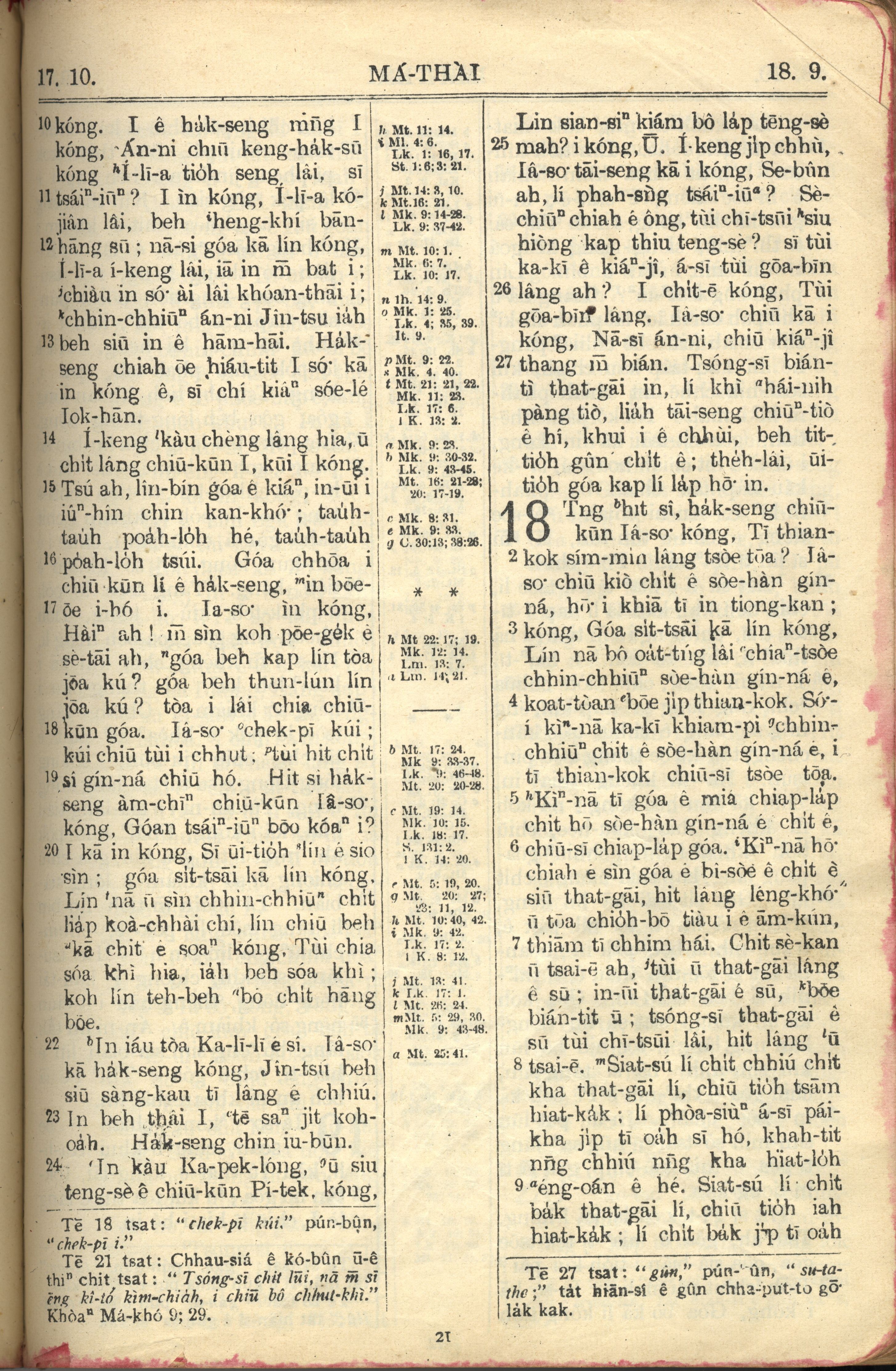 1957年巴克礼全罗台语圣经串珠版 马太福音 17 章 10 节到 18 章 9 节