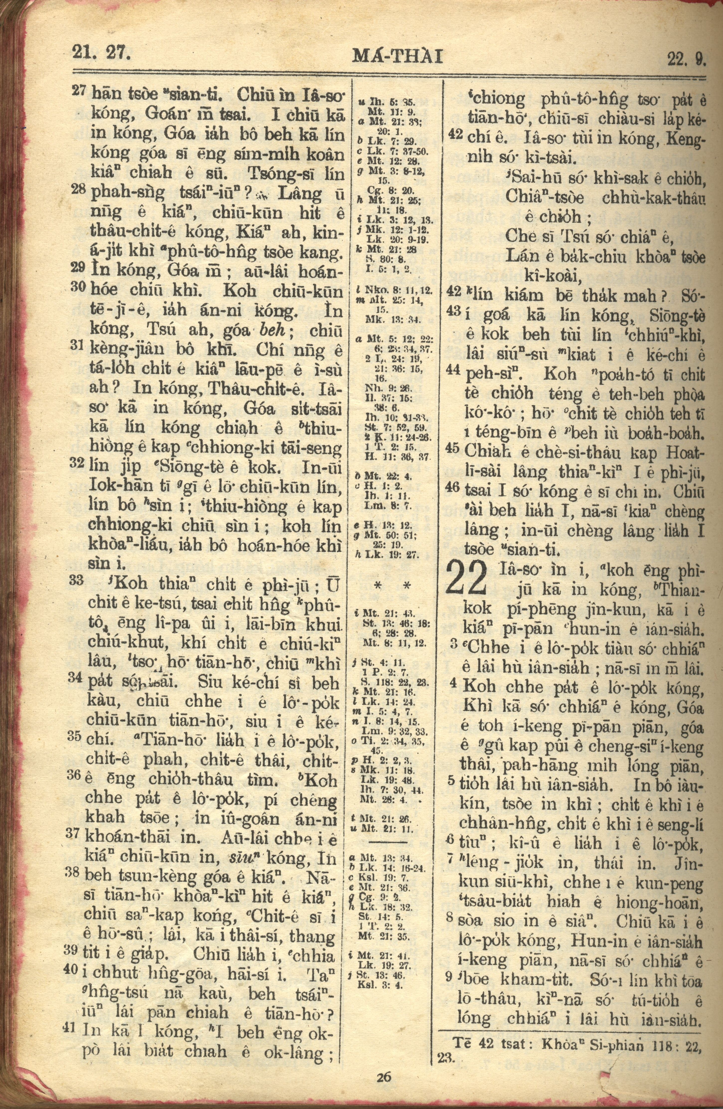 1957年巴克礼全罗台语圣经串珠版 马太福音 21 章 27 节到 22 章 9 节