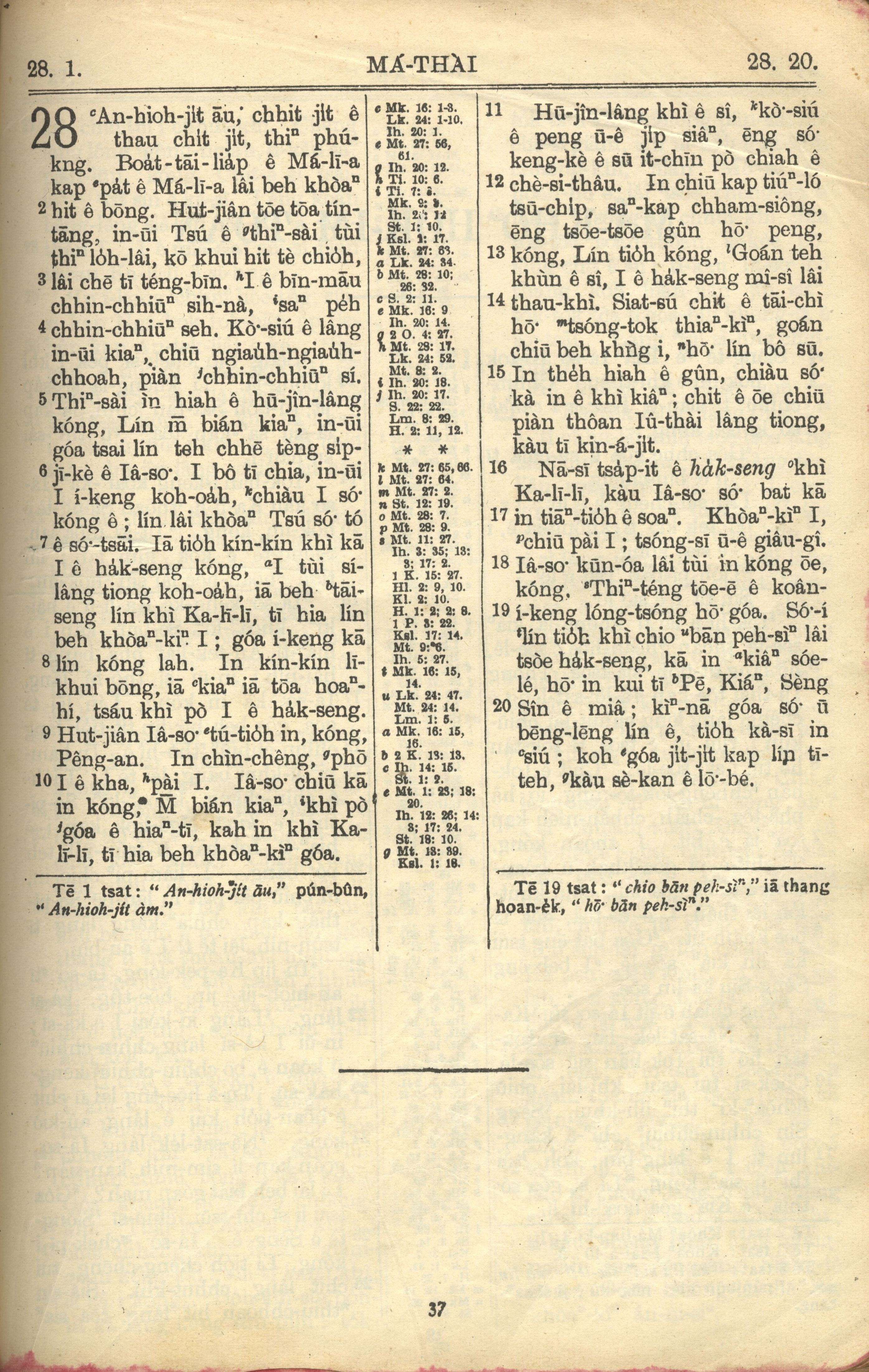 1957年巴克礼全罗台语圣经串珠版 马太福音 28 章 1 节到 28 章 20 节