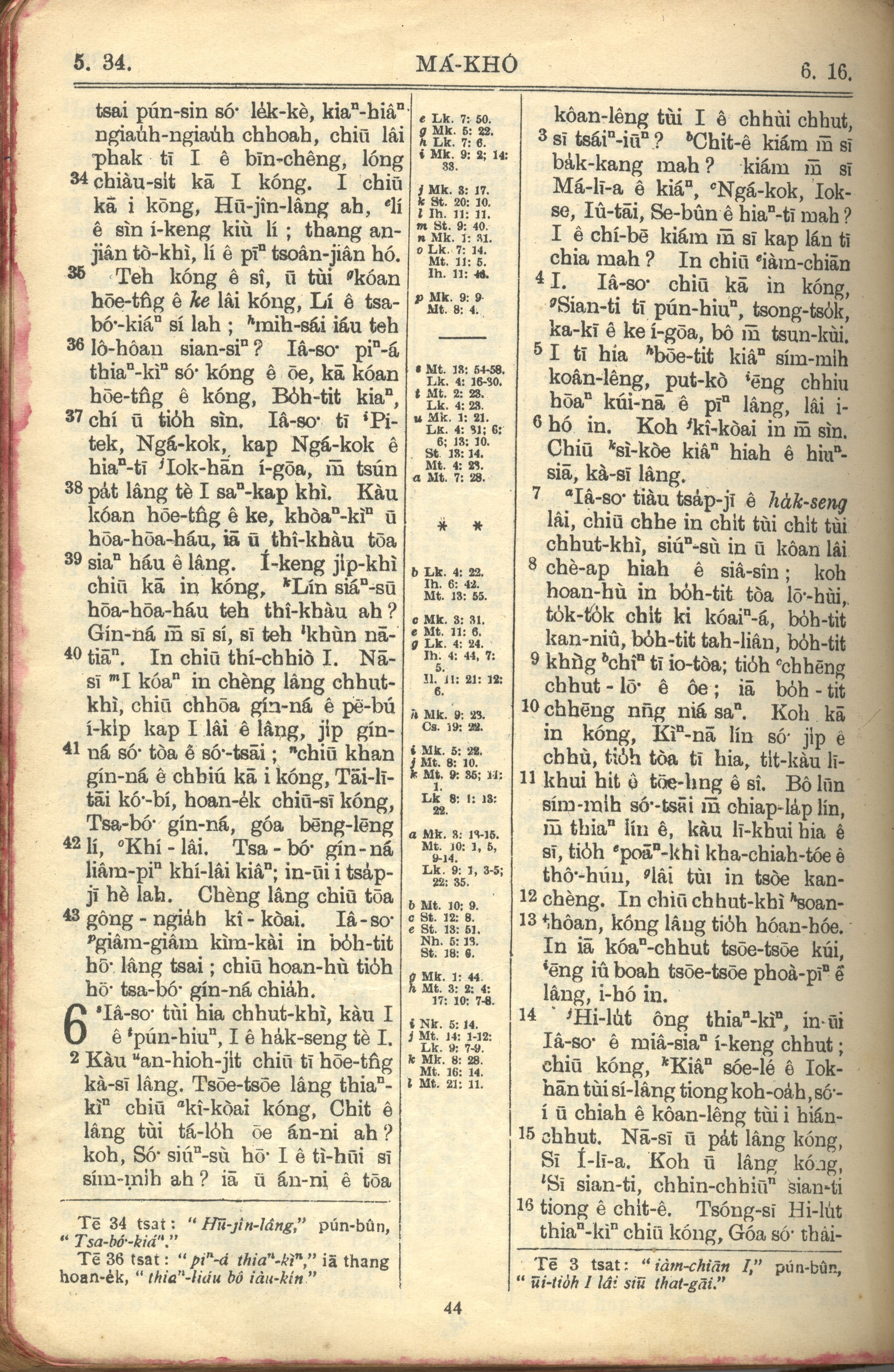 1957年巴克礼全罗台语圣经串珠版 马可福音 5 章 34 节到 6 章 16 节