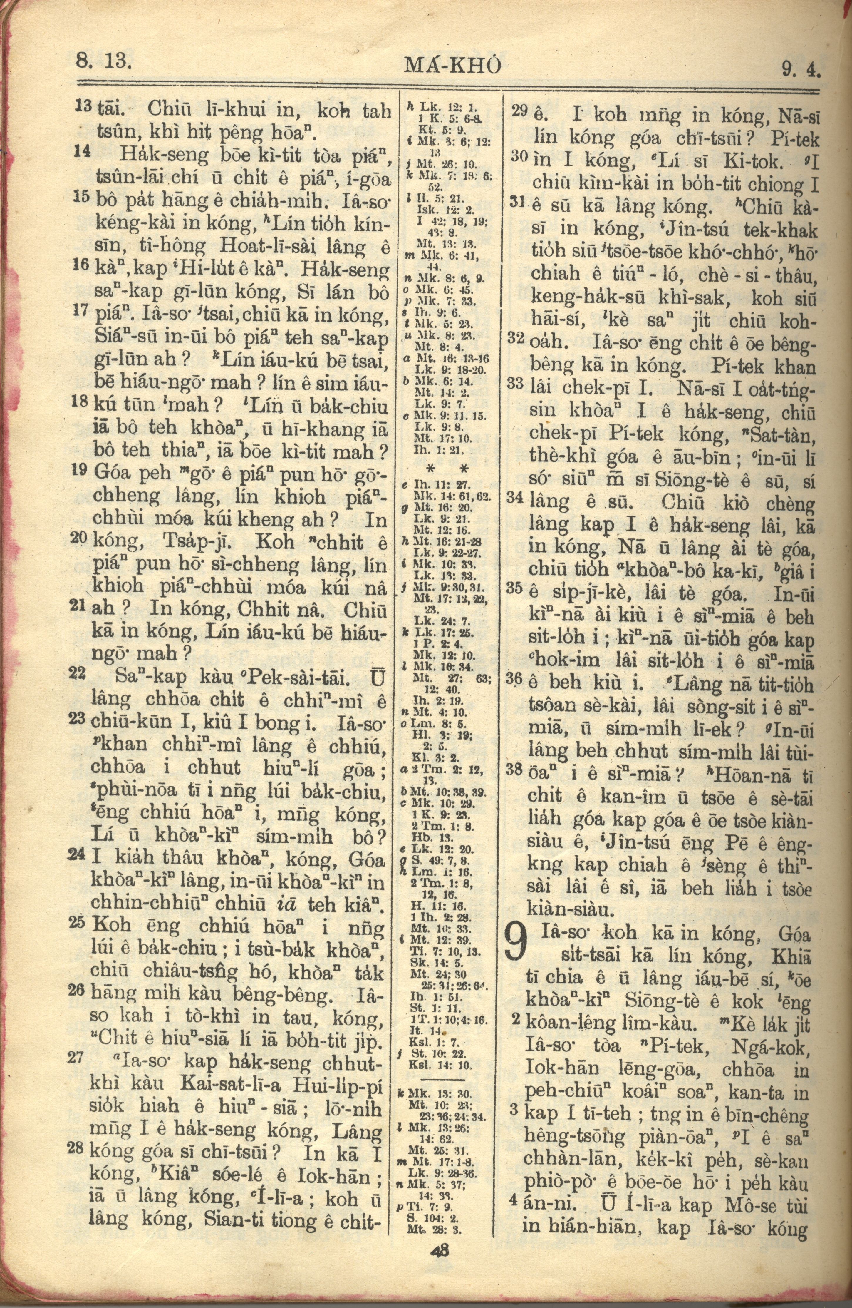 1957年巴克礼全罗台语圣经串珠版 马可福音 8 章 13 节到 9 章 4 节