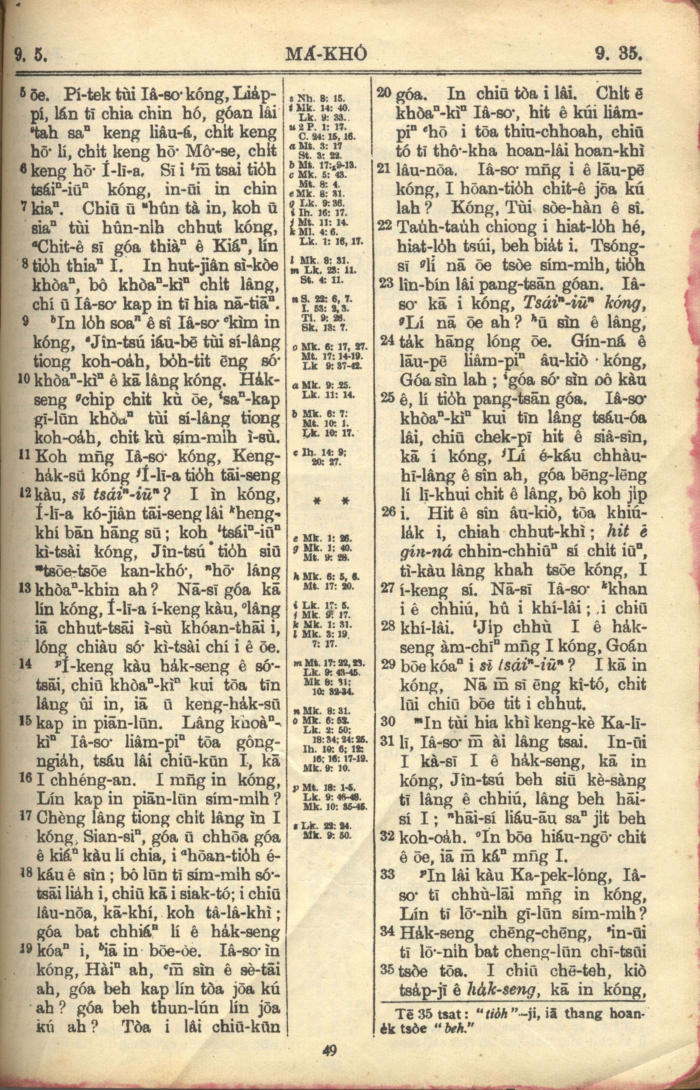 1957年巴克礼全罗台语圣经串珠版 马可福音 9 章 5 节到 9 章 35 节