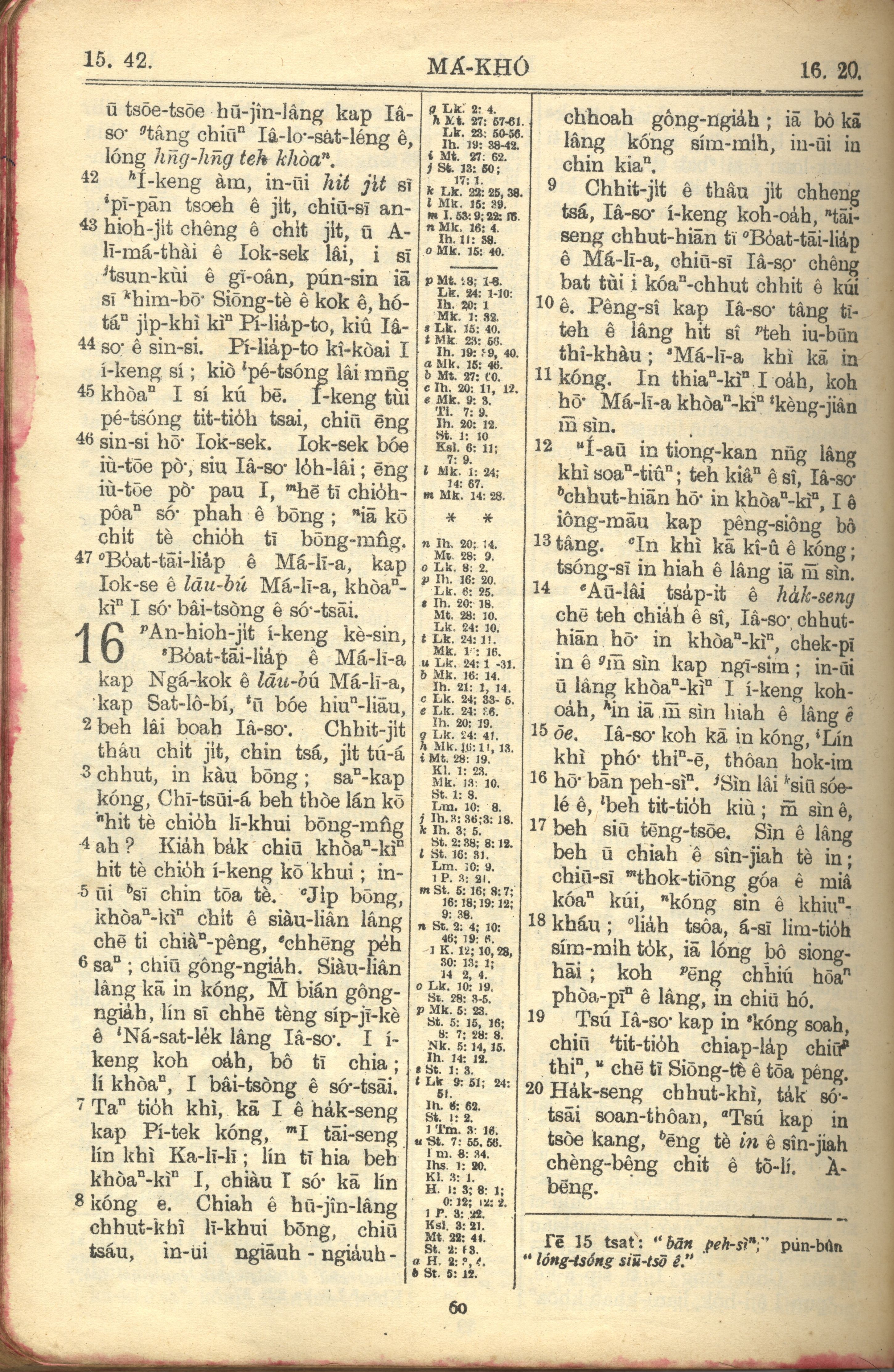 1957年巴克礼全罗台语圣经串珠版 马可福音 15 章 42 节到 16 章 20 节