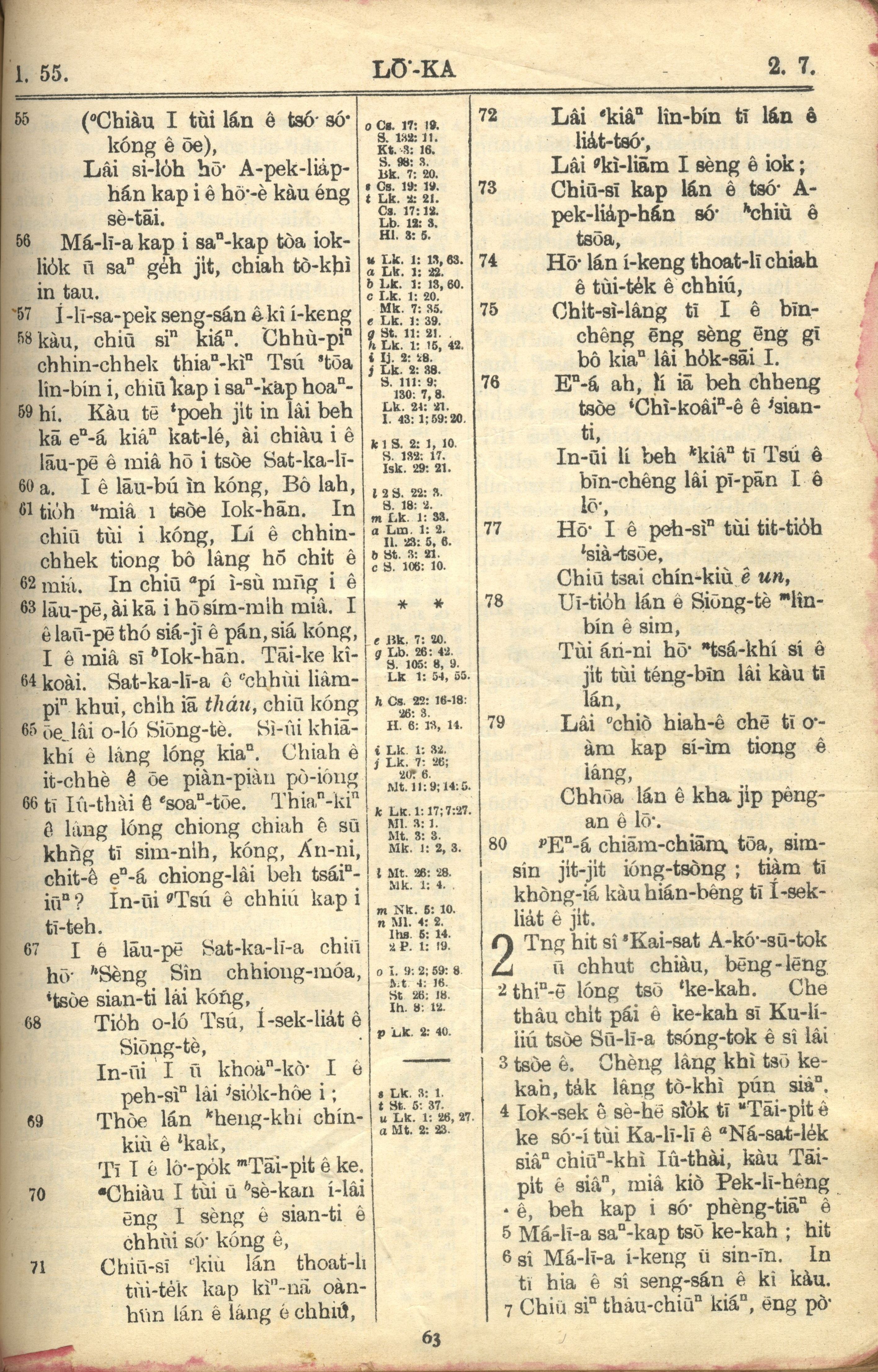 1957年巴克礼全罗台语圣经串珠版 路加福音 1 章 55 节到 2 章 7 节