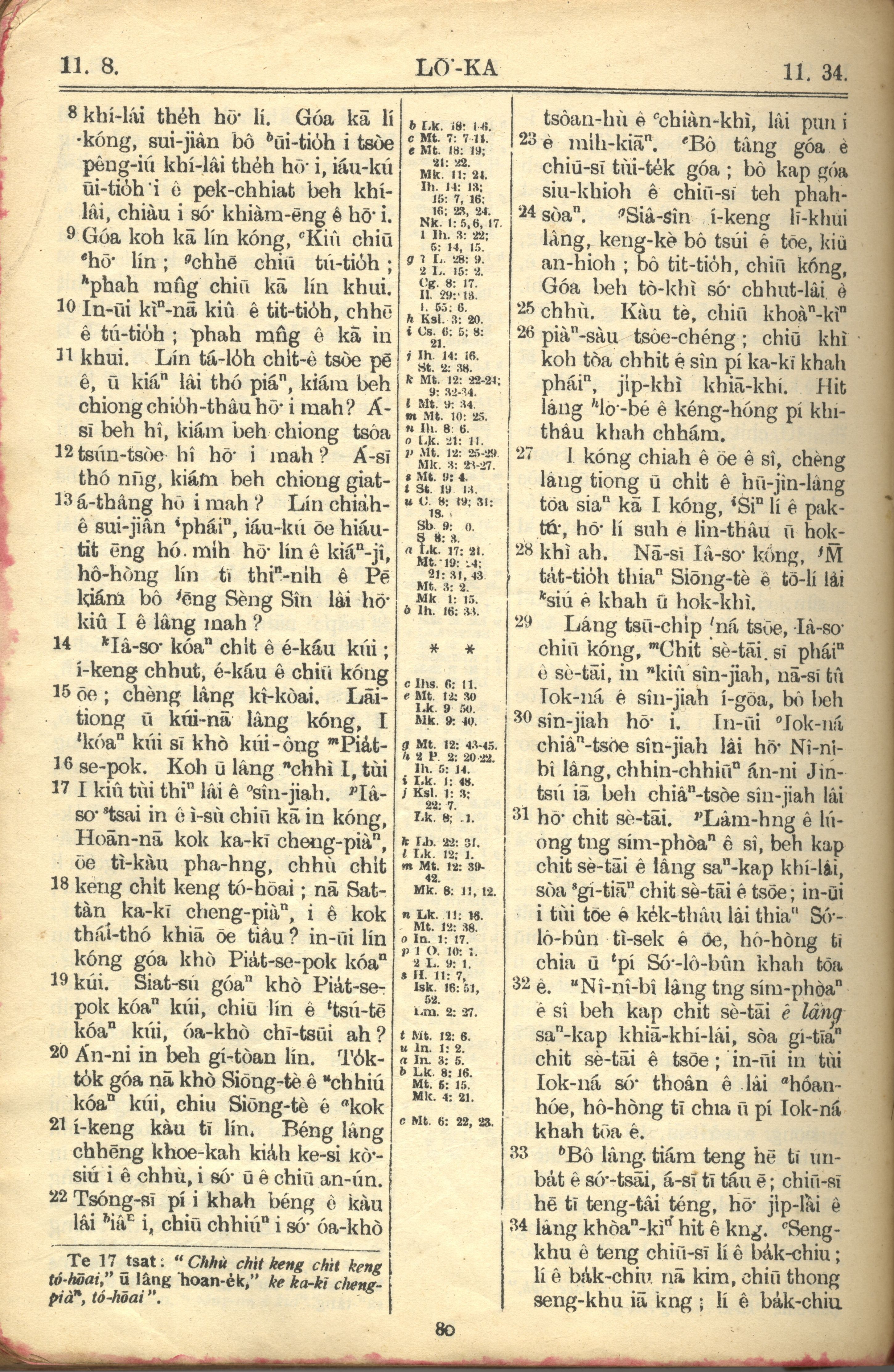 1957年巴克礼全罗台语圣经串珠版 路加福音 11 章 8 节到 11 章 34 节