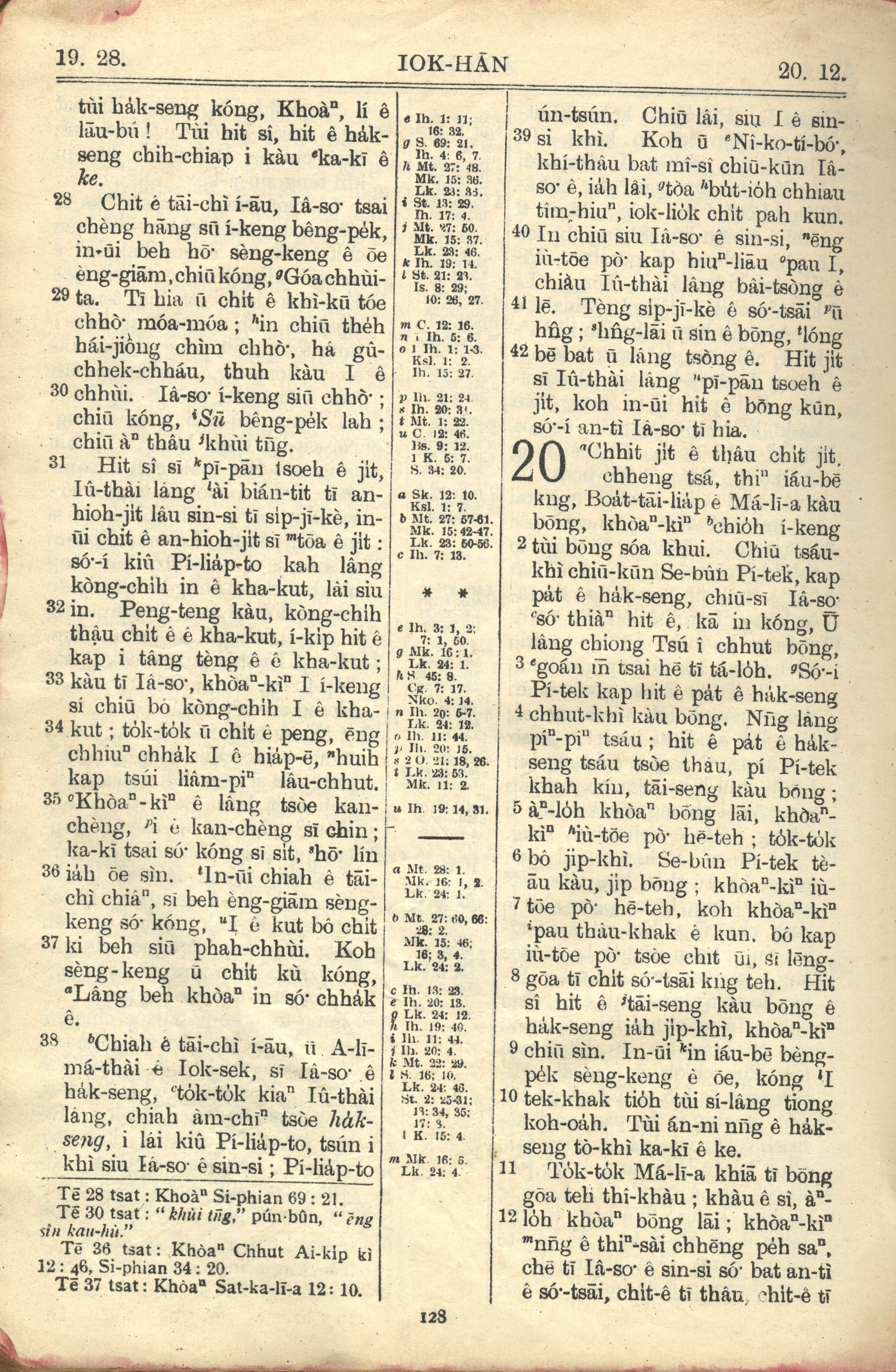 1957年巴克礼全罗台语圣经串珠版 约翰福音 19 章 28 节到 20 章 12 节