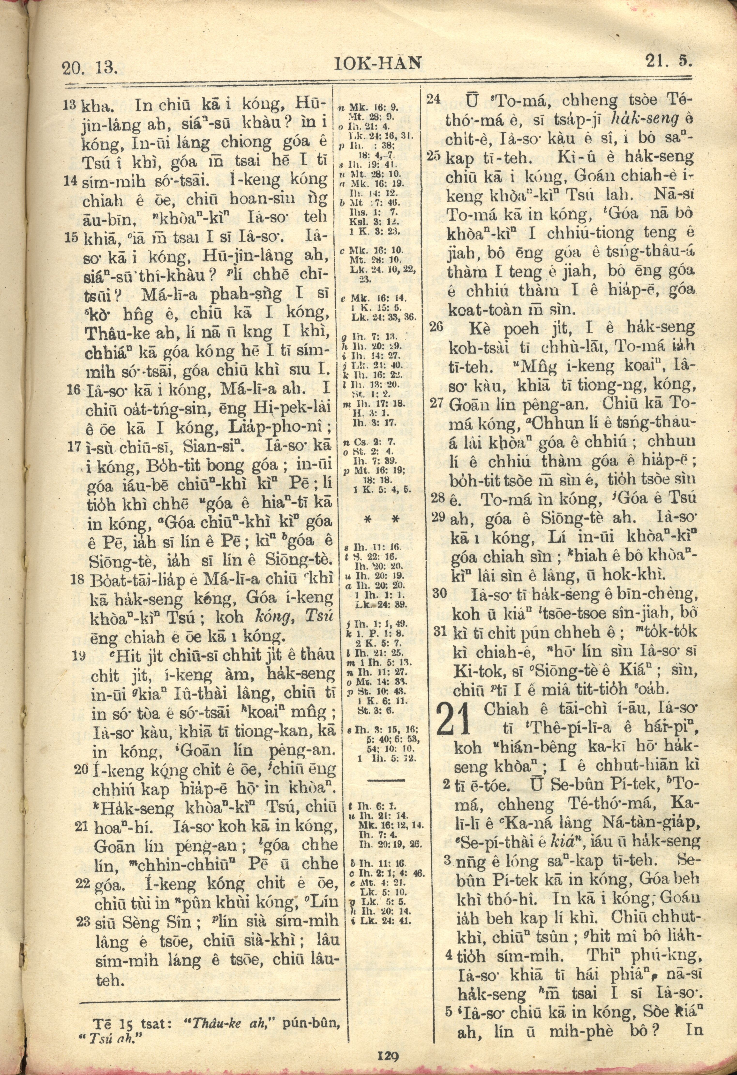 1957年巴克礼全罗台语圣经串珠版 约翰福音 20 章 13 节到 21 章 5 节