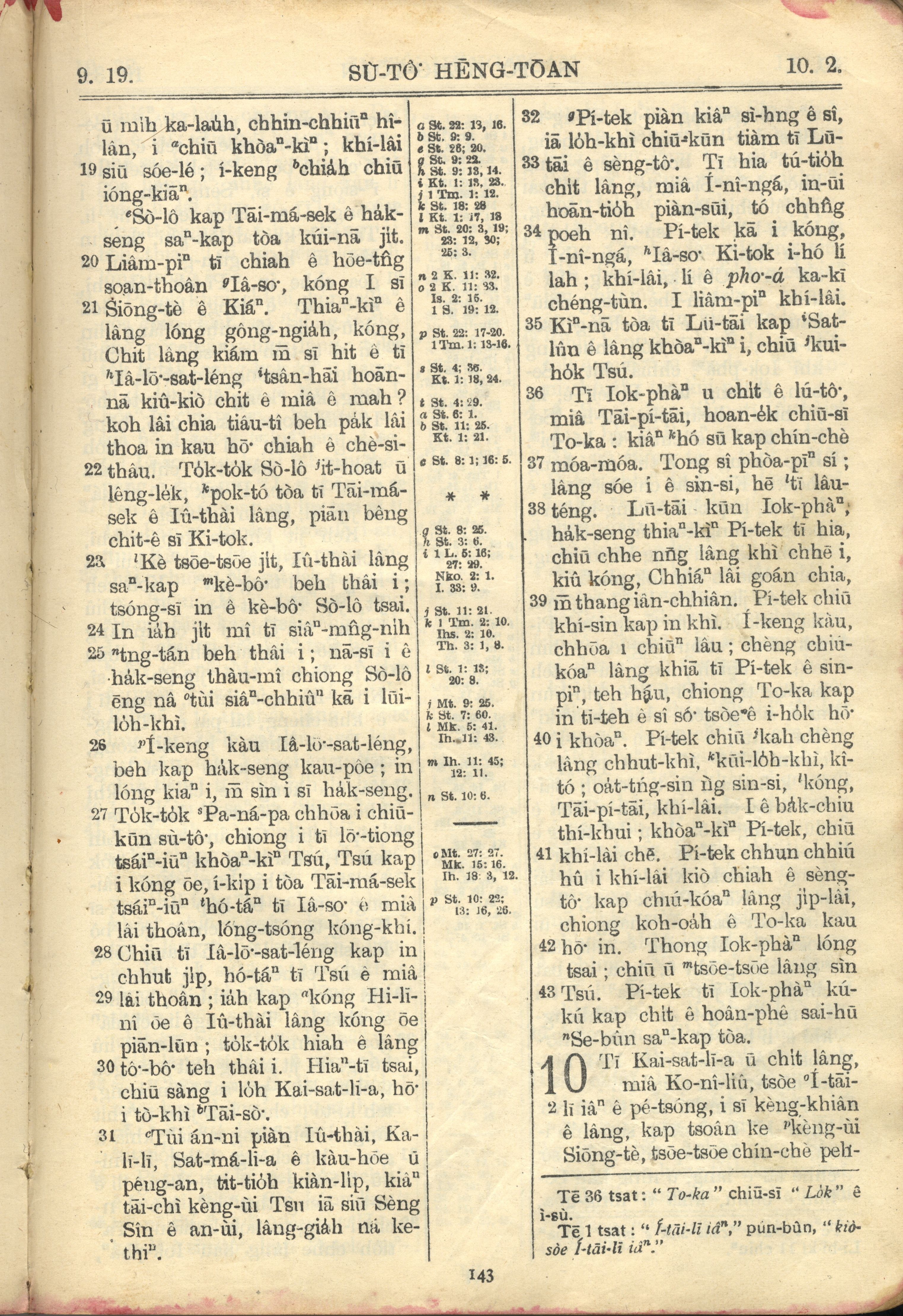 1957年巴克礼全罗台语圣经串珠版 使徒行传 9 章 19 节到 10 章 2 节