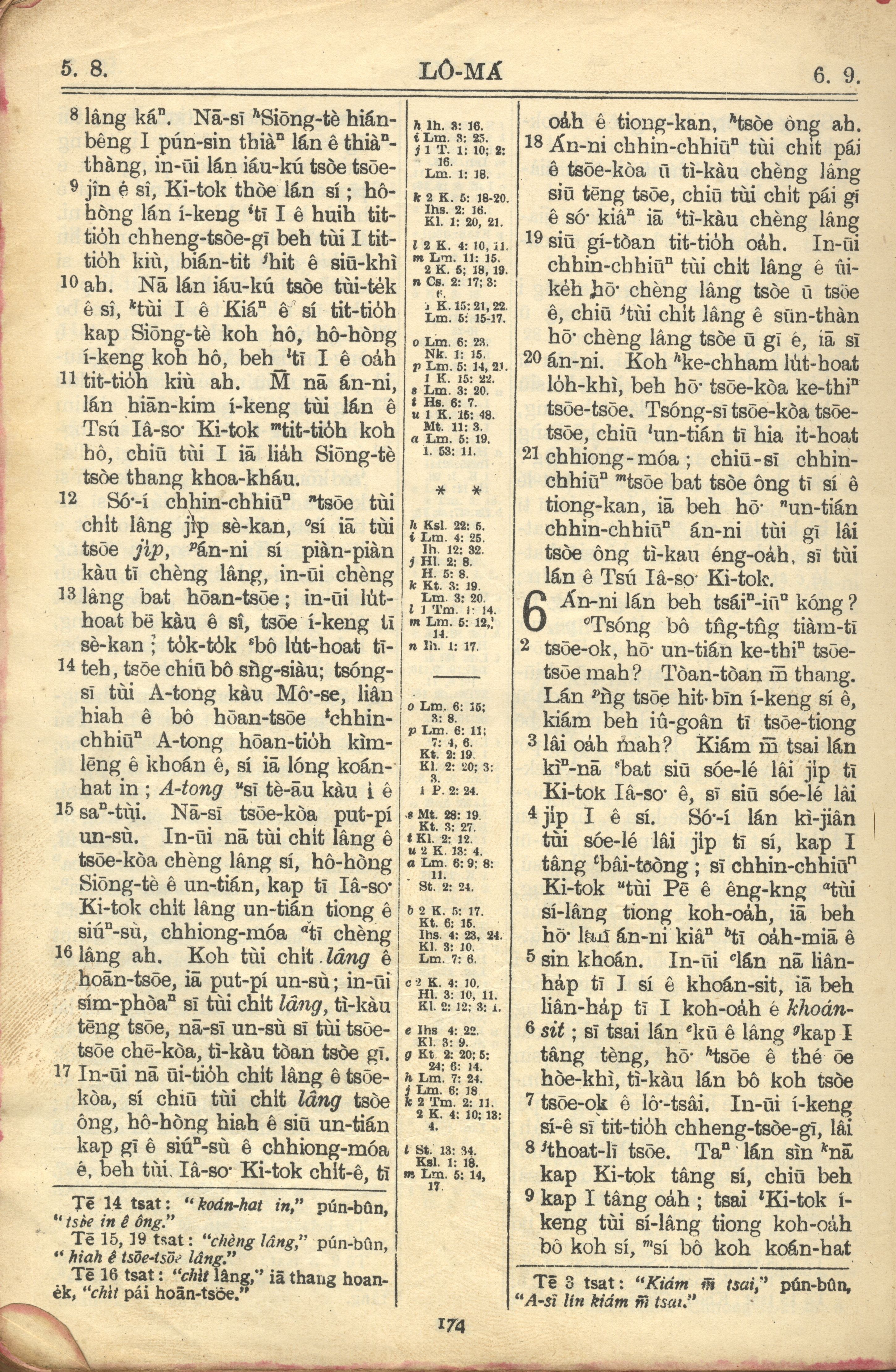 1957年巴克礼全罗台语圣经串珠版 罗马书 5 章 8 节到 6 章 9 节
