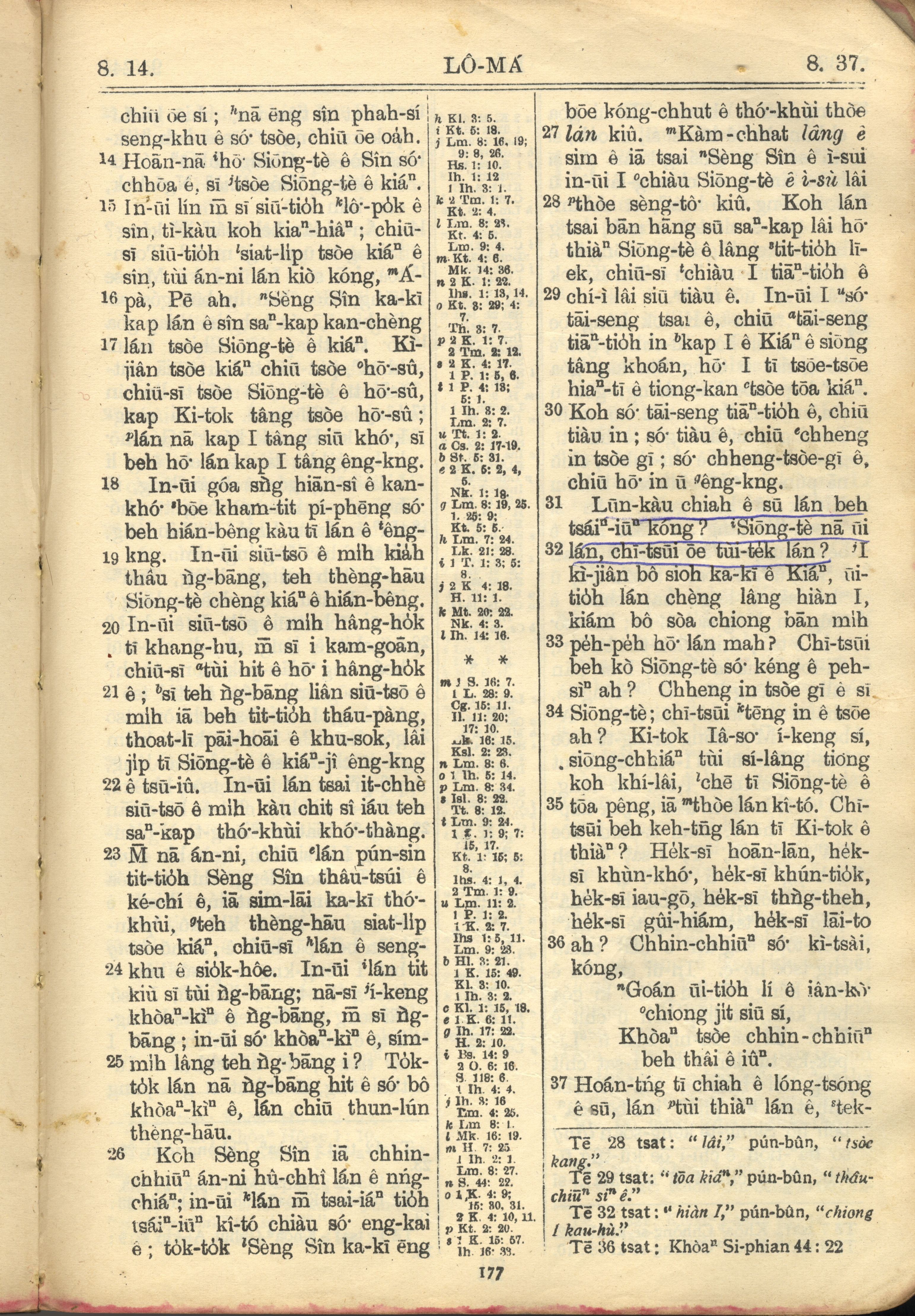 1957年巴克礼全罗台语圣经串珠版 罗马书 8 章 14 节到 8 章 37 节