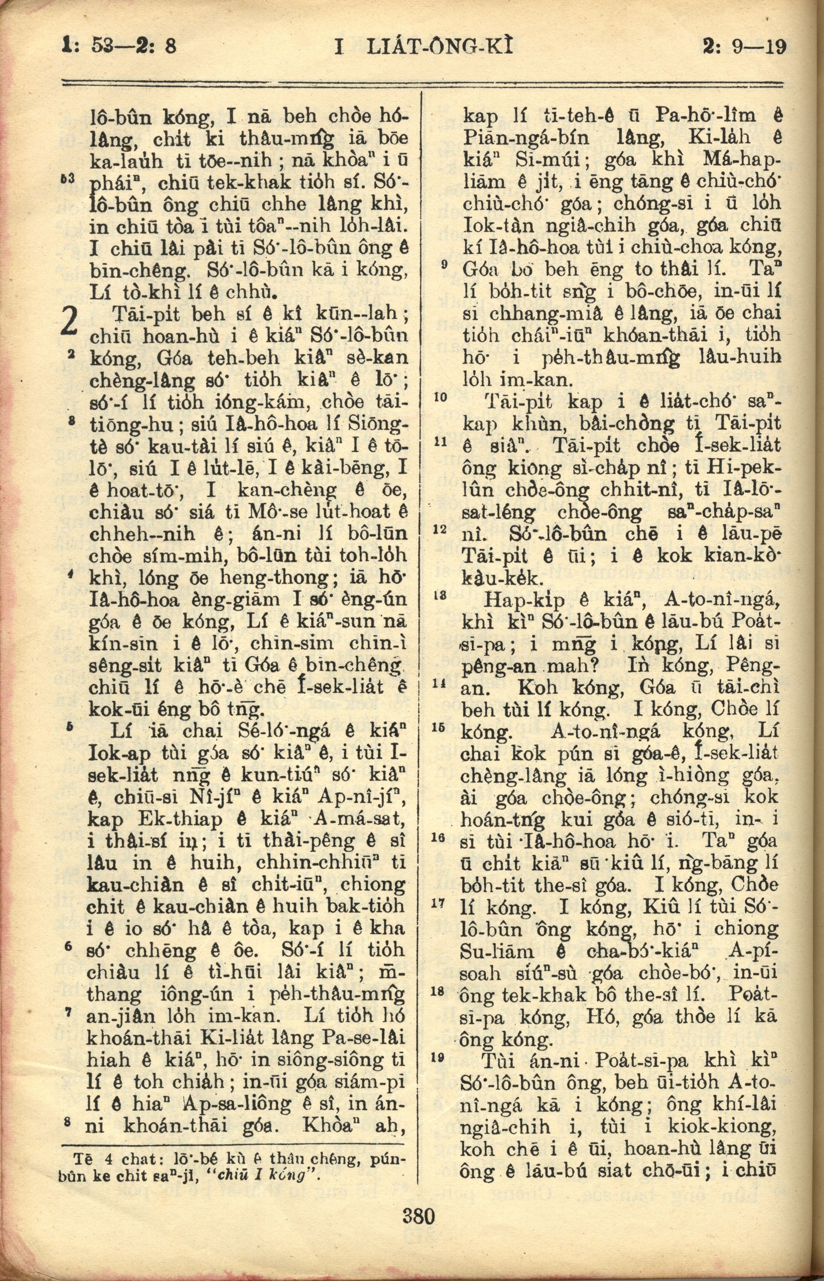 1957年巴克礼全罗台语圣经串珠版 列王纪上 1 章 53 节到 2 章 19 节