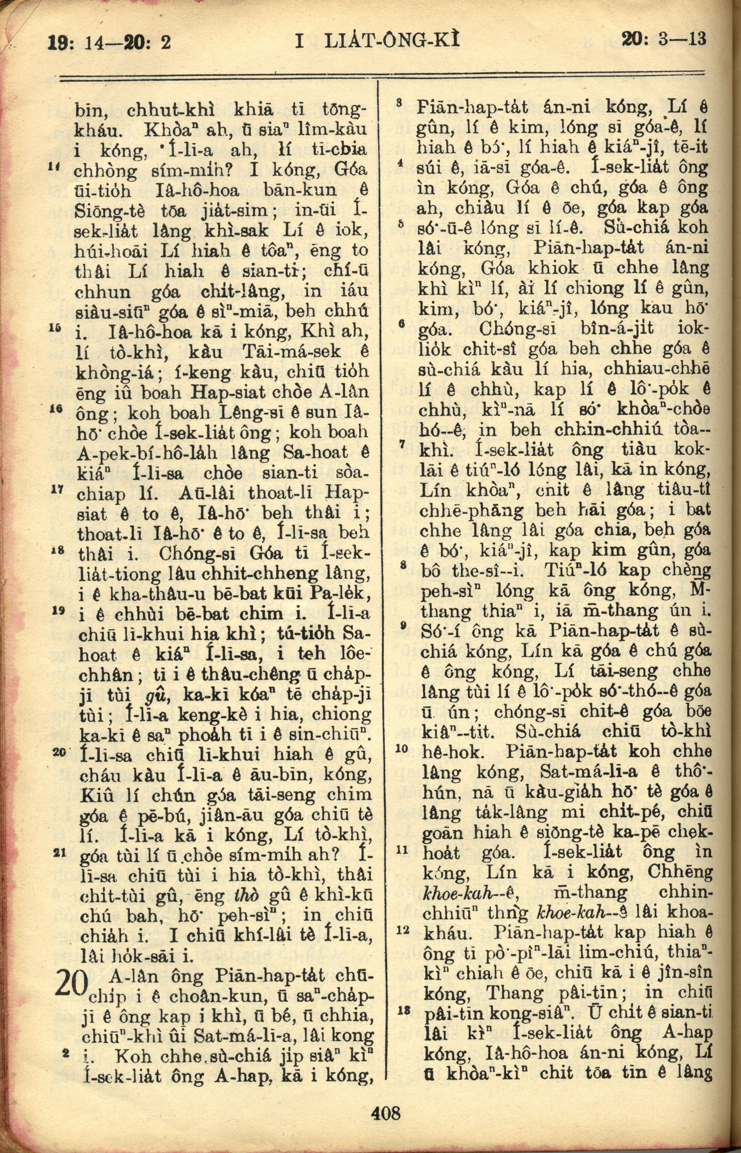 1957年巴克礼全罗台语圣经串珠版 列王纪上 19 章 14 节到 20 章 13 节