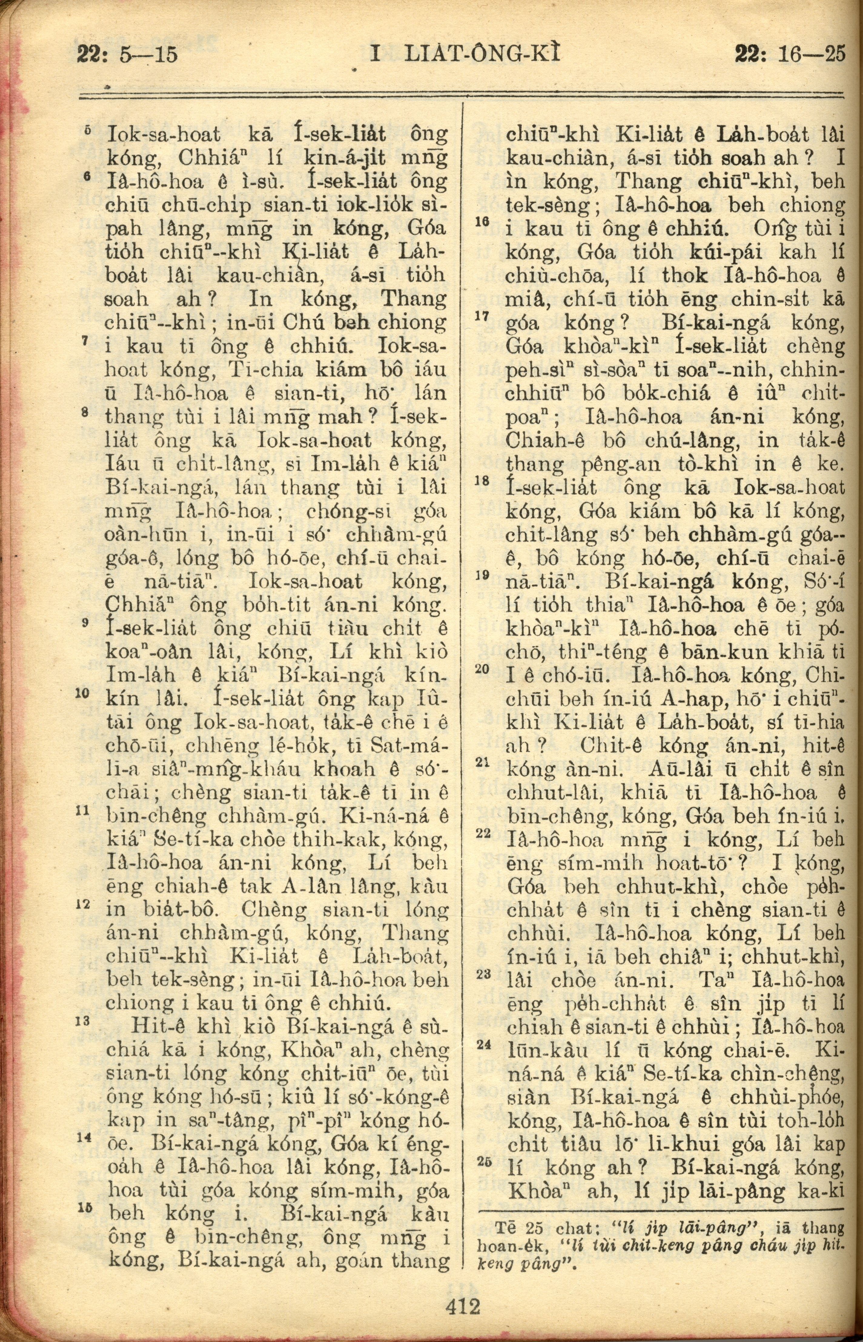 1957年巴克礼全罗台语圣经串珠版 列王纪上 22 章 5 节到 22 章 25 节