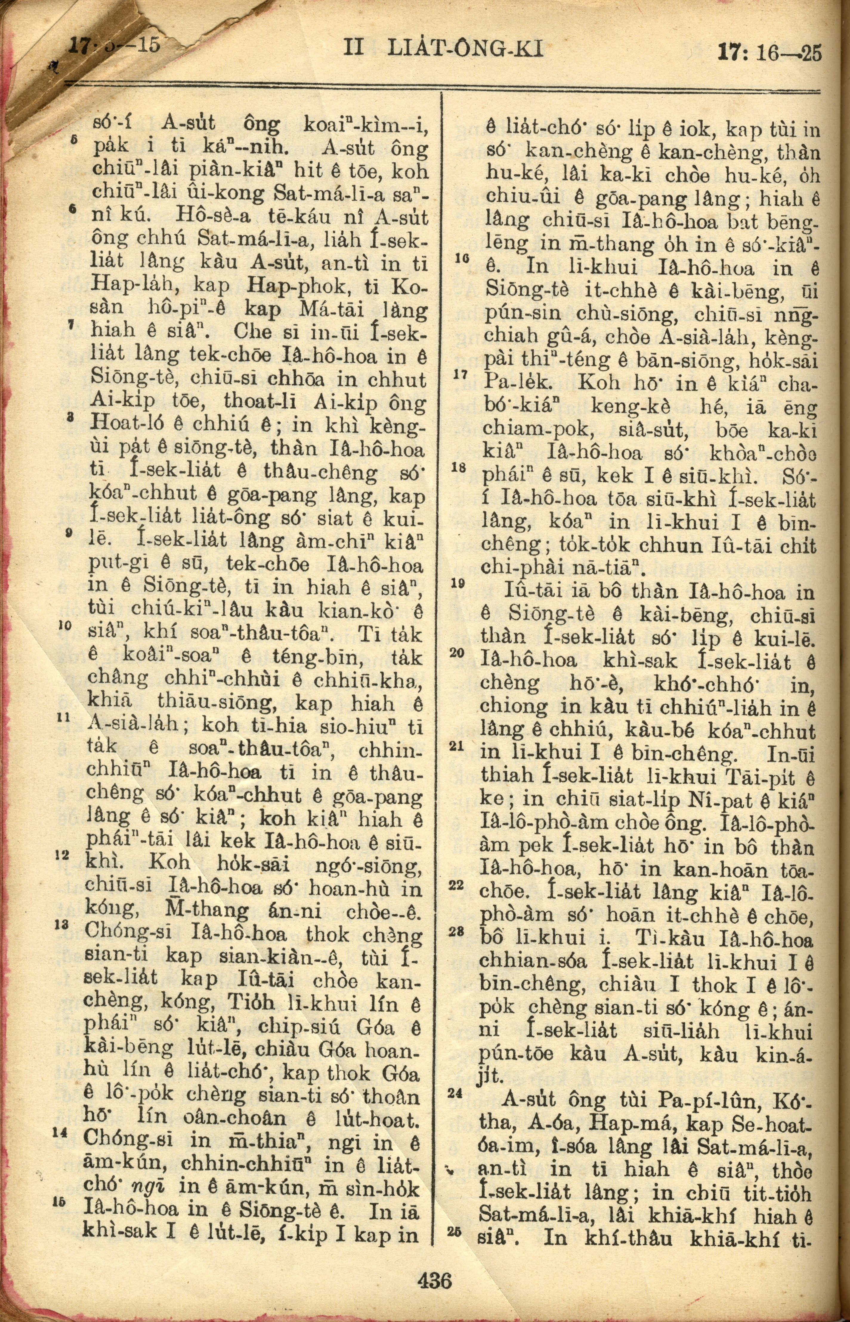 1957年巴克礼全罗台语圣经串珠版 列王纪下 17 章 5 节到 17 章 25 节
