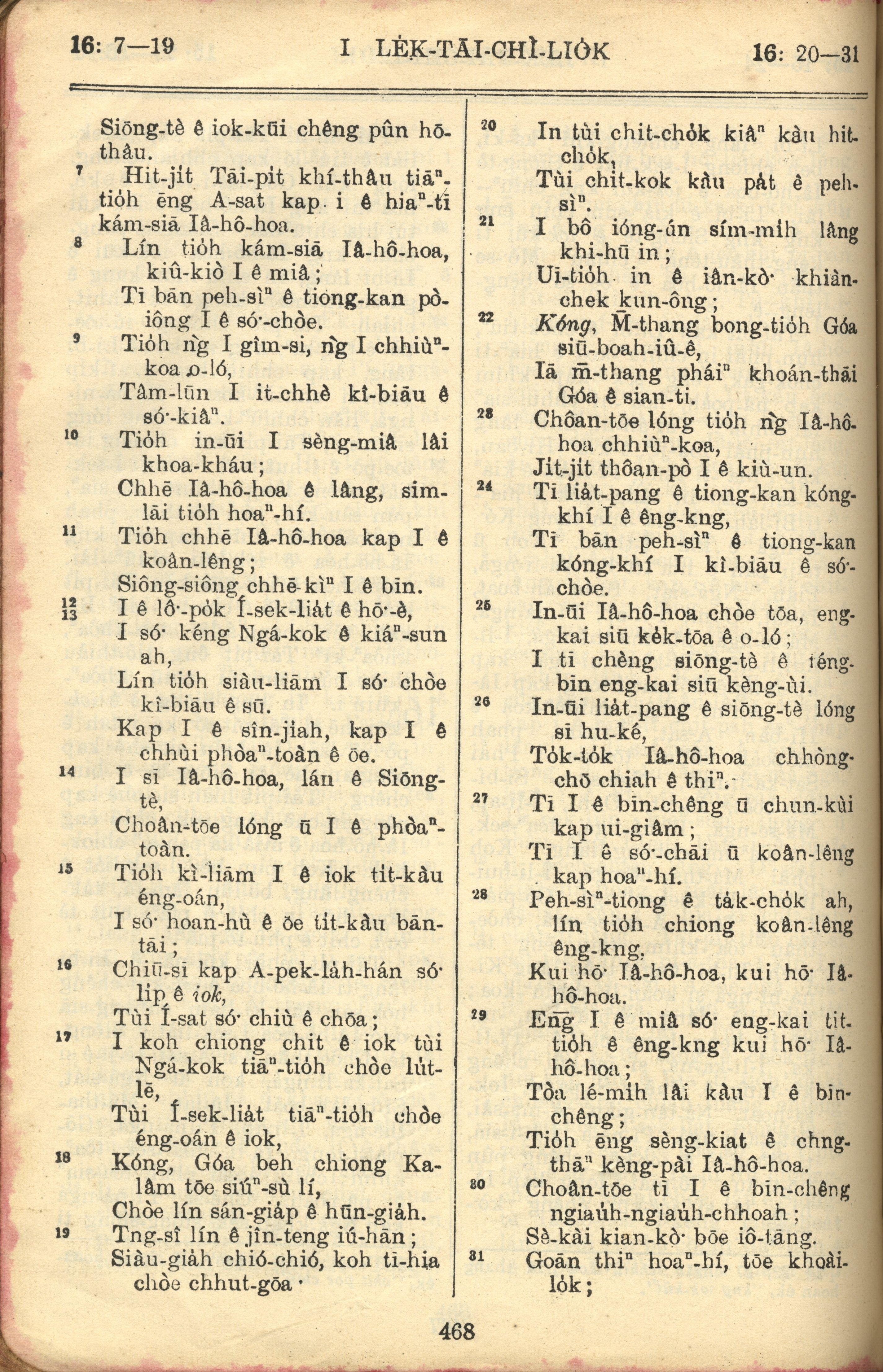 1957年巴克礼全罗台语圣经串珠版 历代志上 16 章 7 节到 16 章 31 节