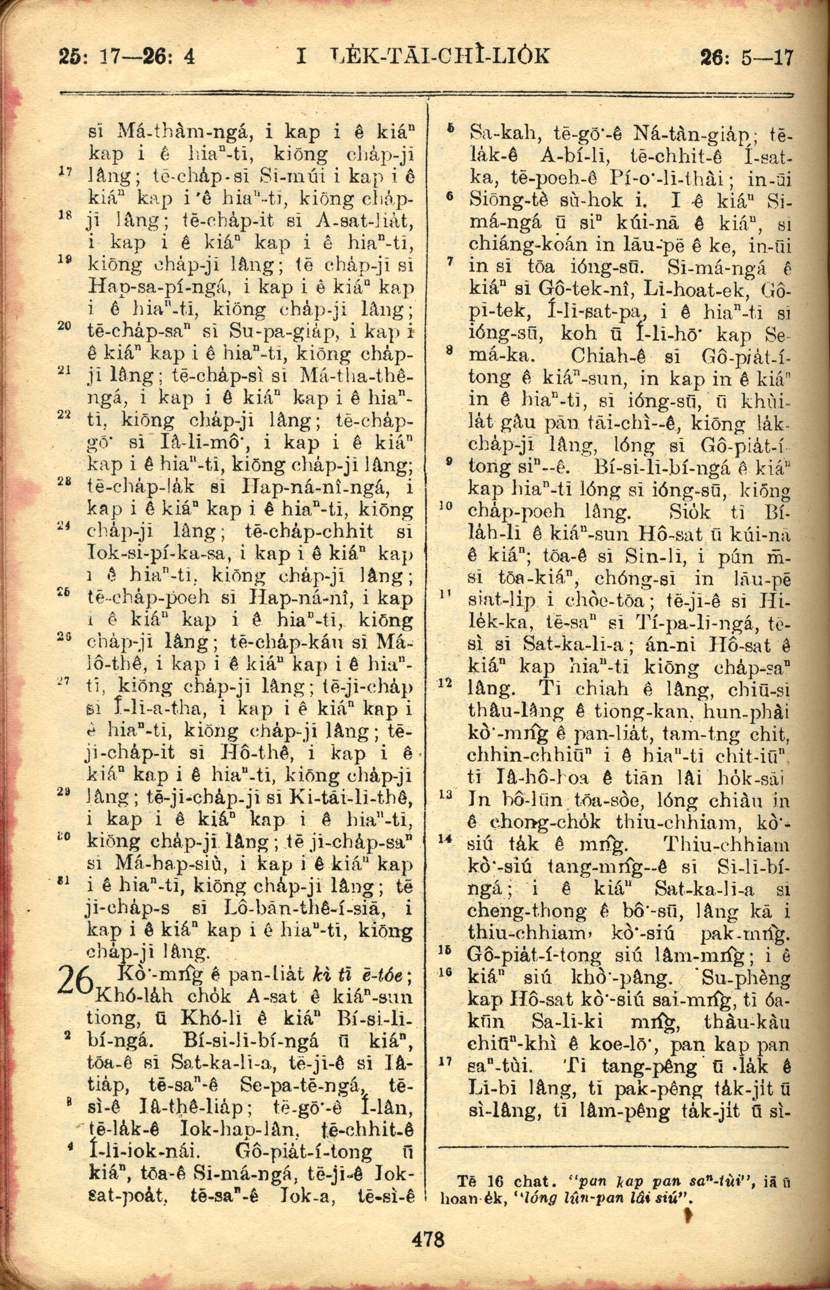 1957年巴克礼全罗台语圣经串珠版 历代志上 25 章 17 节到 26 章 17 节