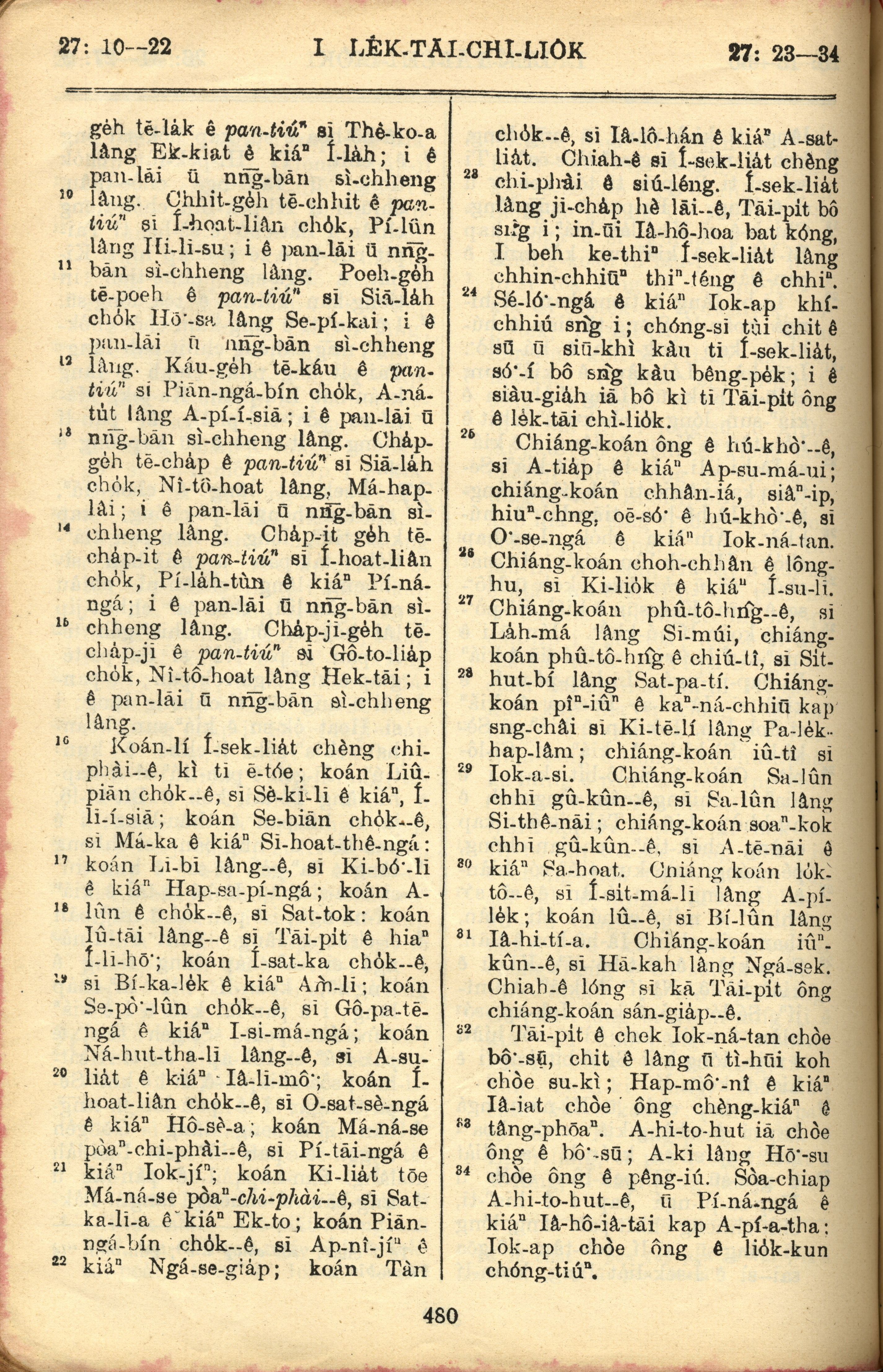 1957年巴克礼全罗台语圣经串珠版 历代志上 27 章 10 节到 27 章 34 节