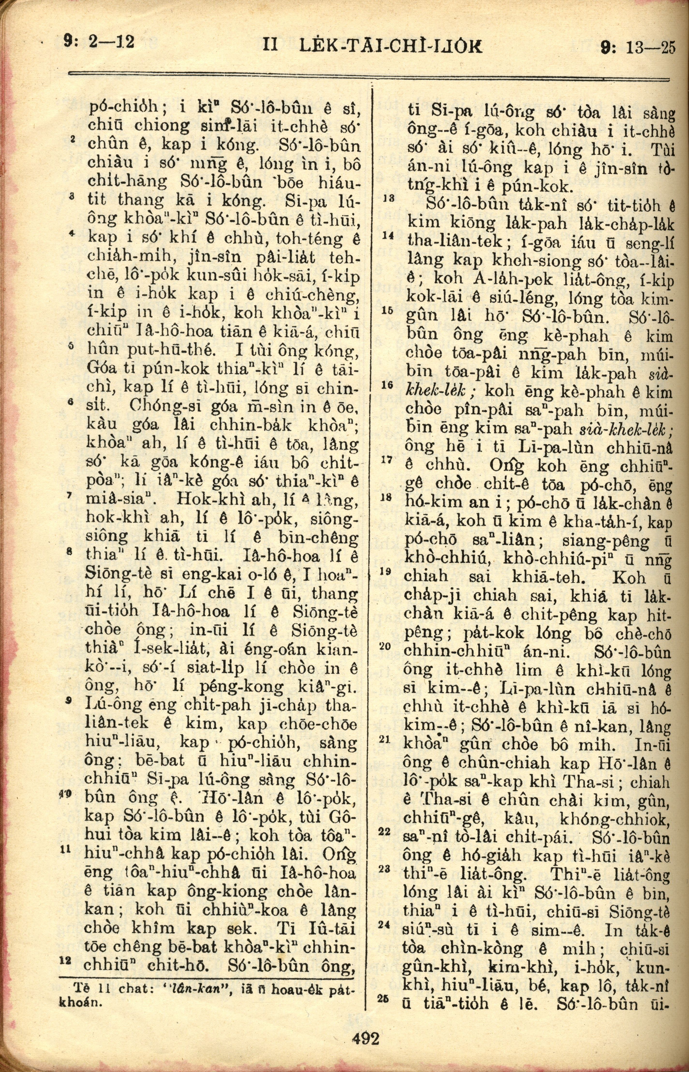 1957年巴克礼全罗台语圣经串珠版 历代志下 9 章 2 节到 9 章 25 节