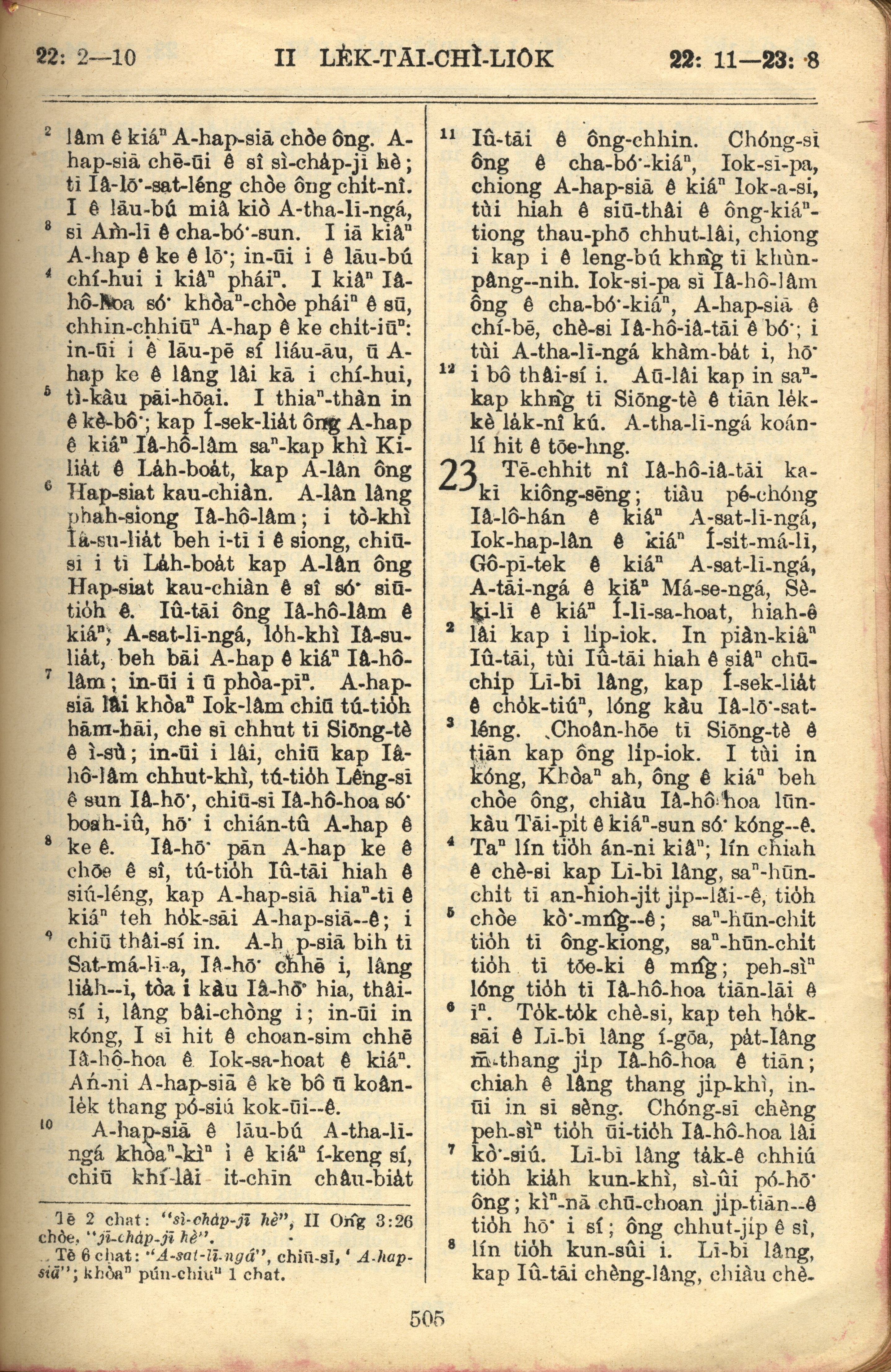1957年巴克礼全罗台语圣经串珠版 历代志下 22 章 2 节到 23 章 8 节