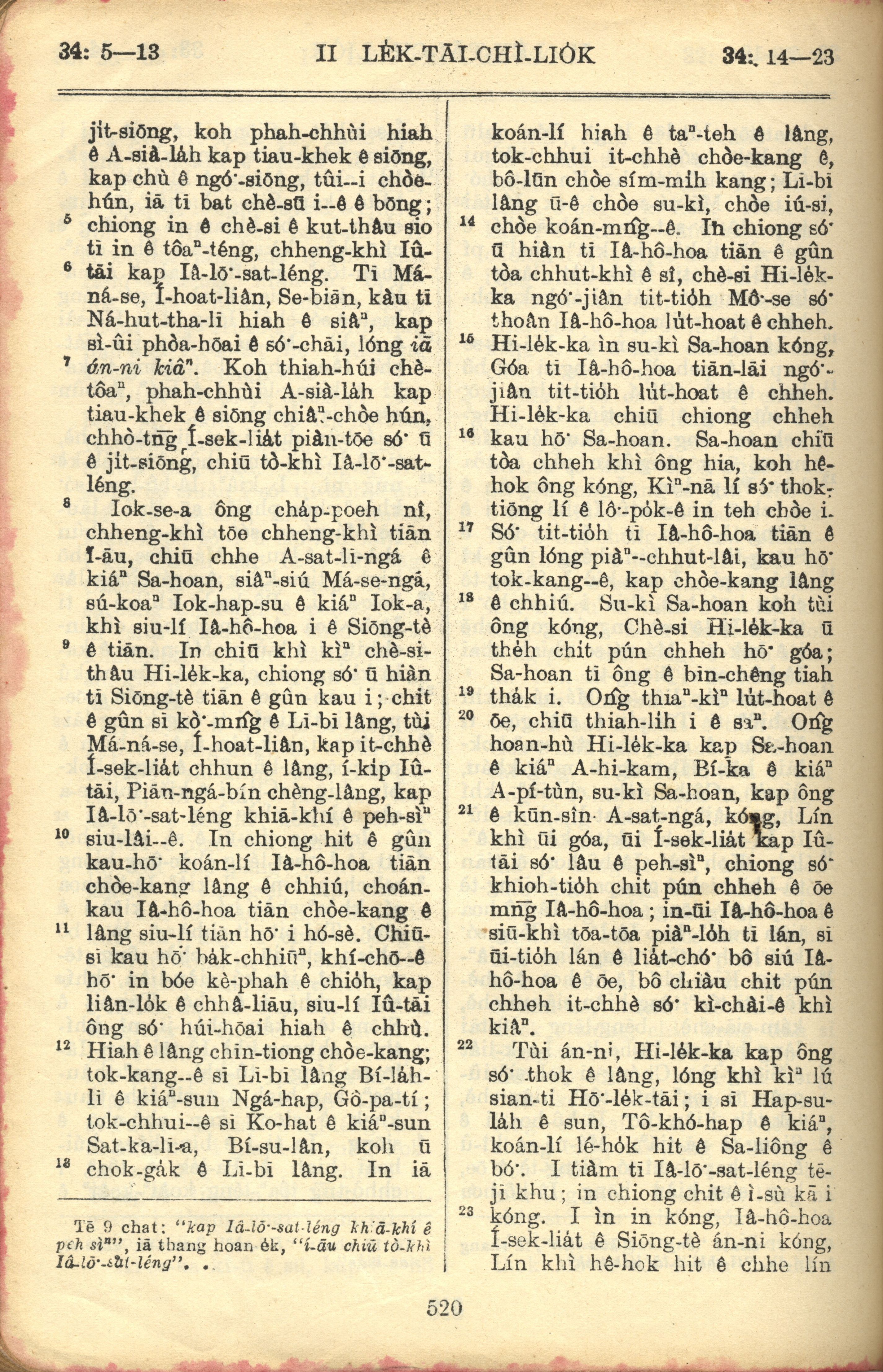 1957年巴克礼全罗台语圣经串珠版 历代志下 34 章 5 节到 34 章 23 节