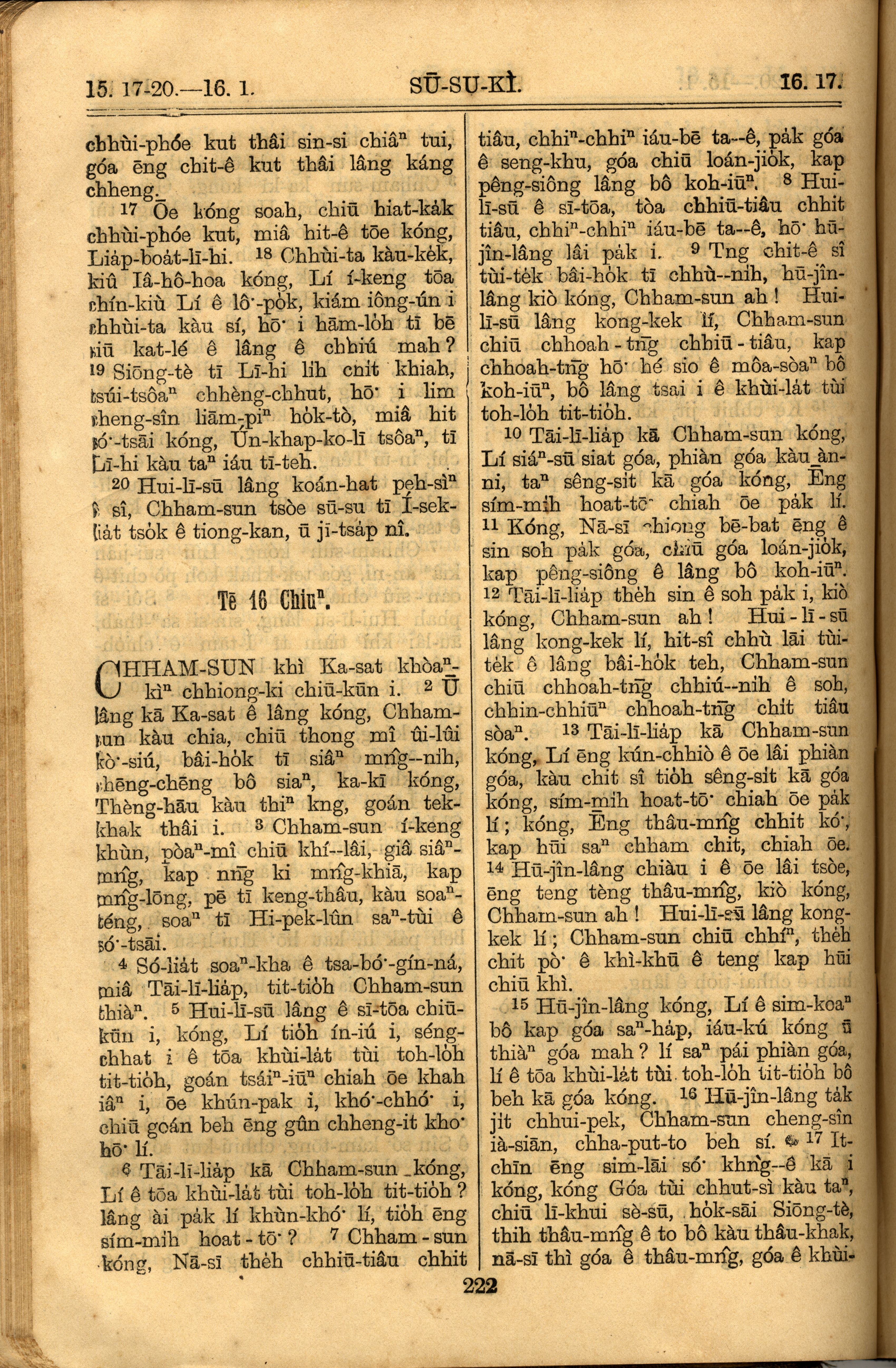 1921年罗马字旧约全书 士师记 15 章 17 节到 16 章 17 节
