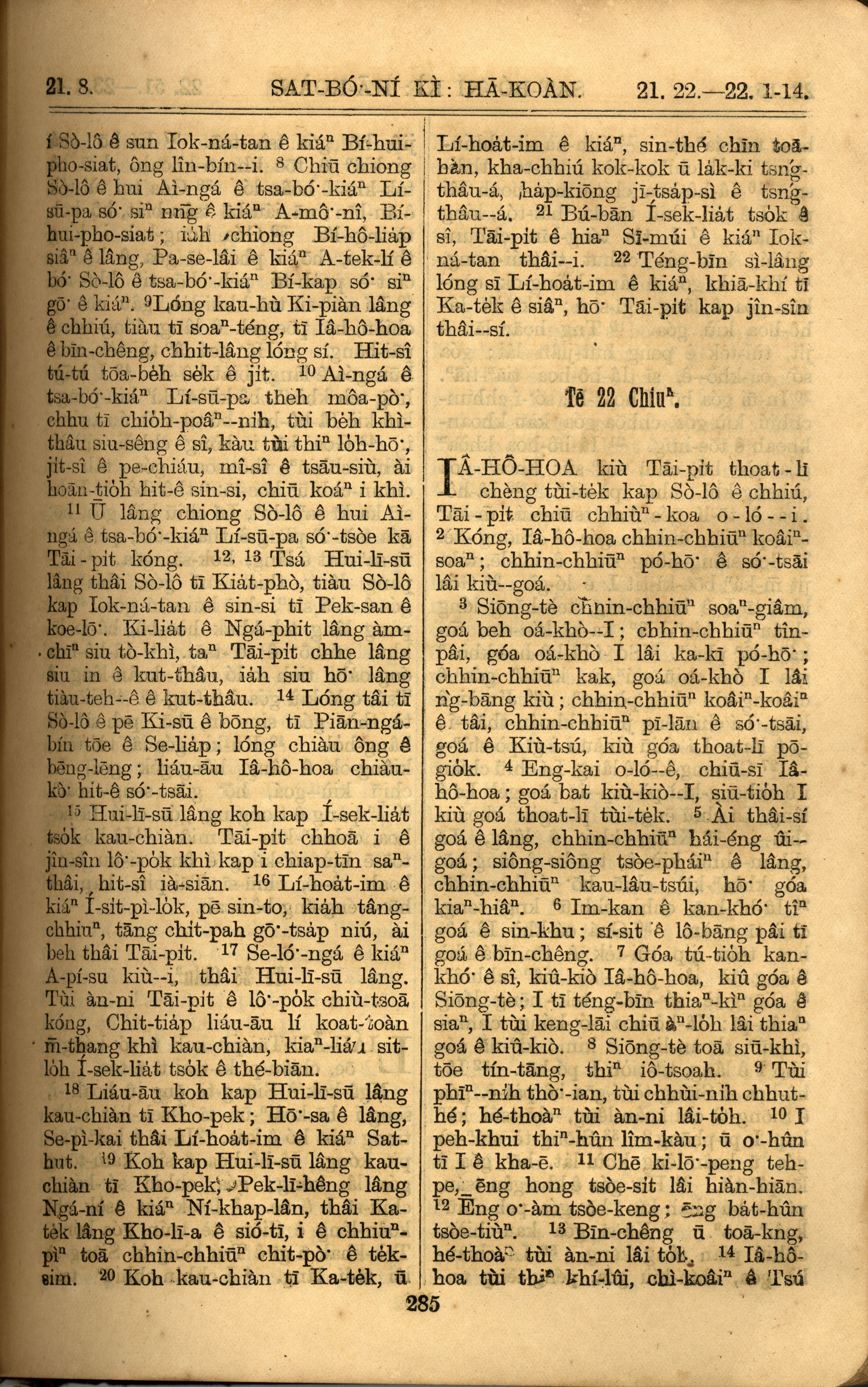 1921年罗马字旧约全书 撒母耳记下 21 章 8 节到 22 章 14 节
