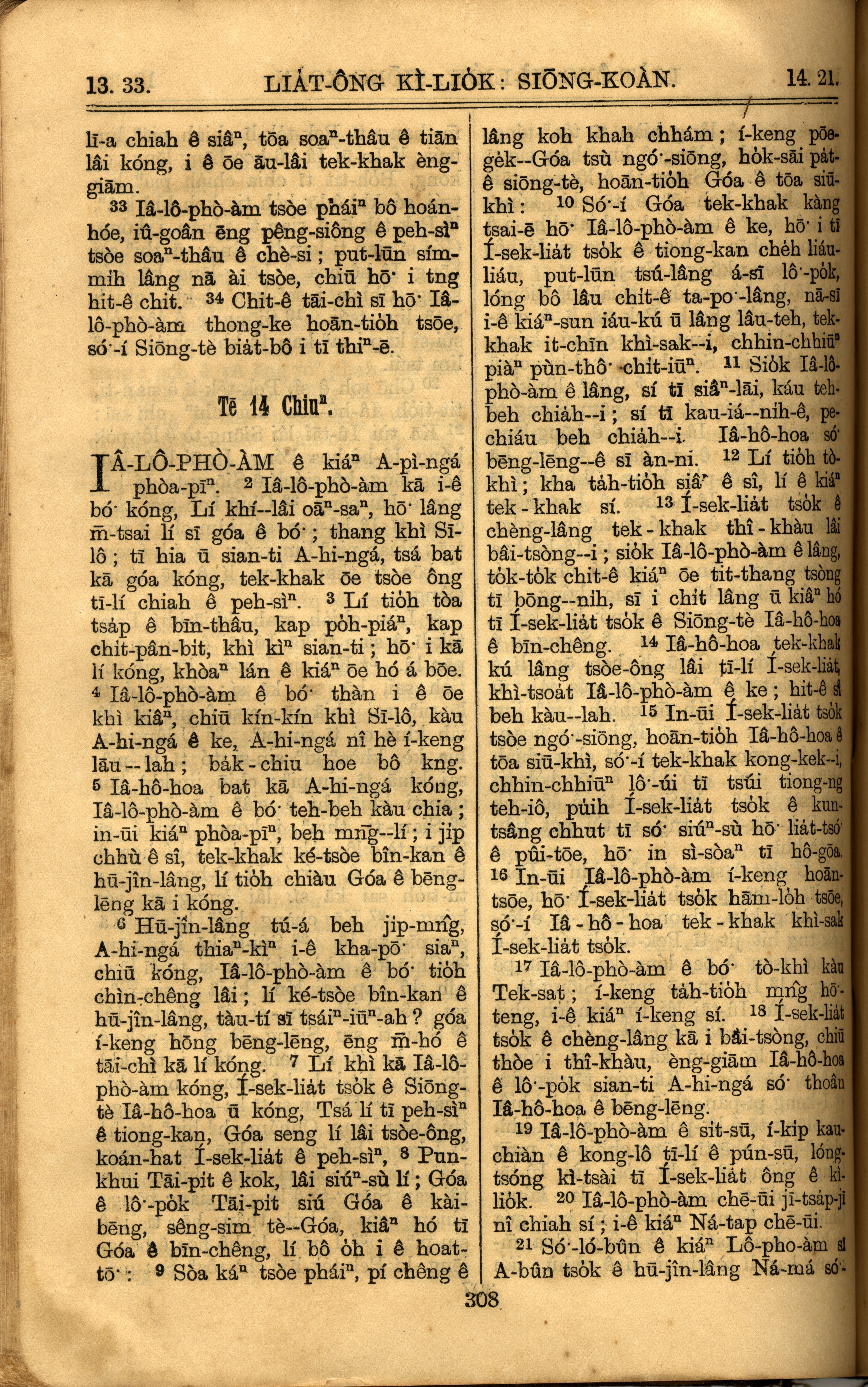 1921年罗马字旧约全书 列王纪上 13 章 33 节到 14 章 21 节