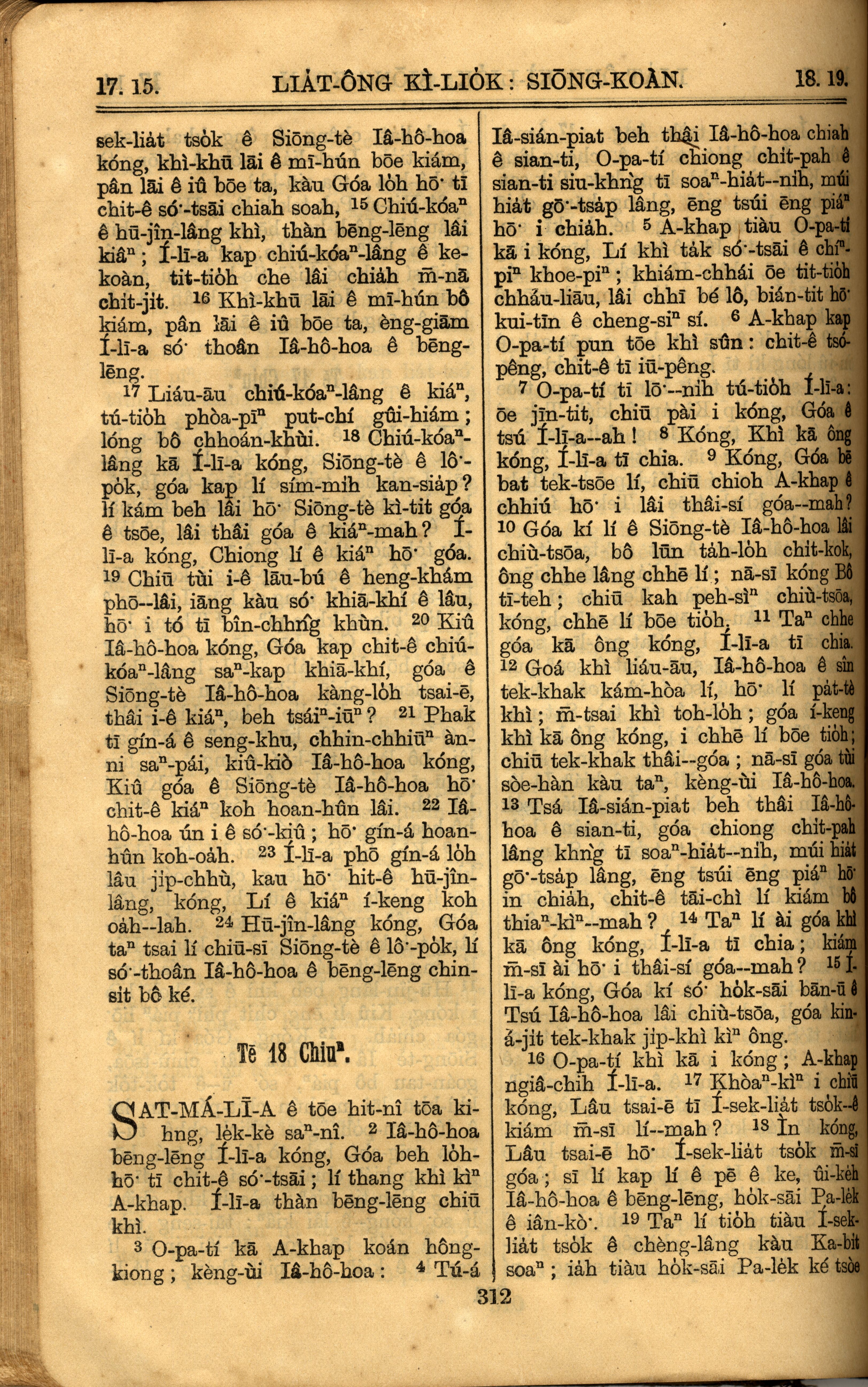 1921年罗马字旧约全书 列王纪上 17 章 15 节到 18 章 19 节