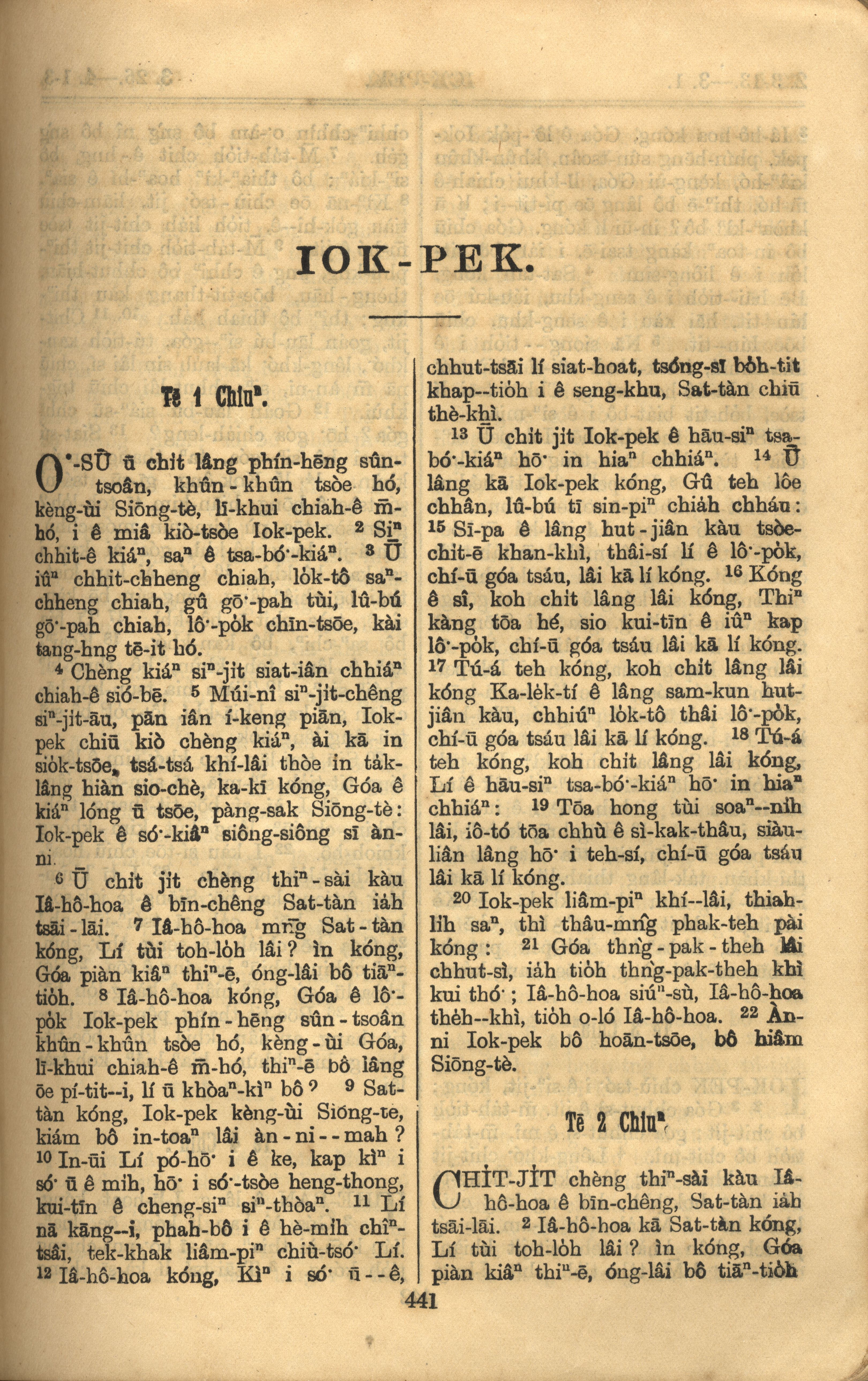 1921年罗马字旧约全书 约伯记 1 章 1 节到 2 章 2 节