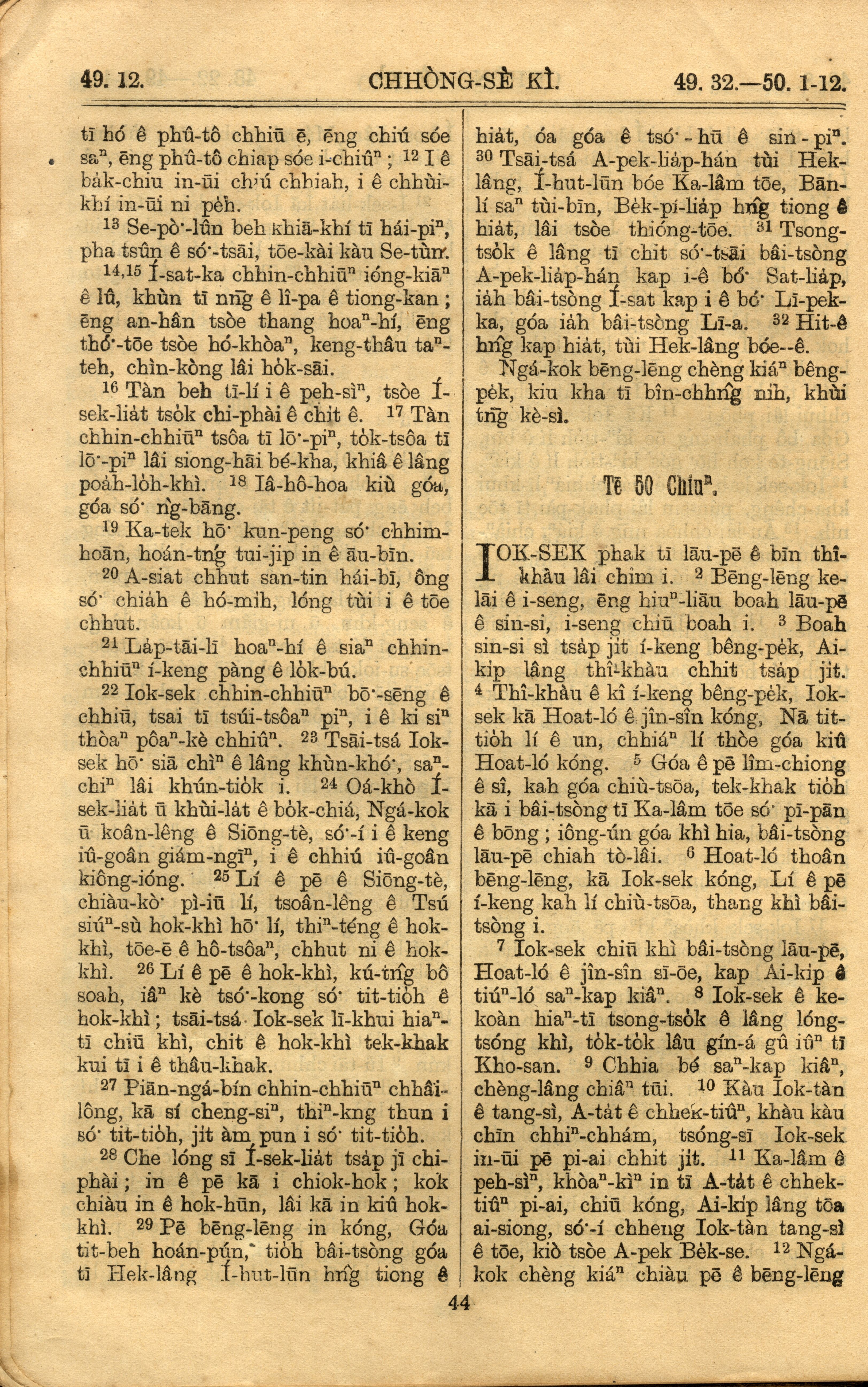 1921年罗马字旧约全书 创世记 49 章 12 节到 50 章 12 节
