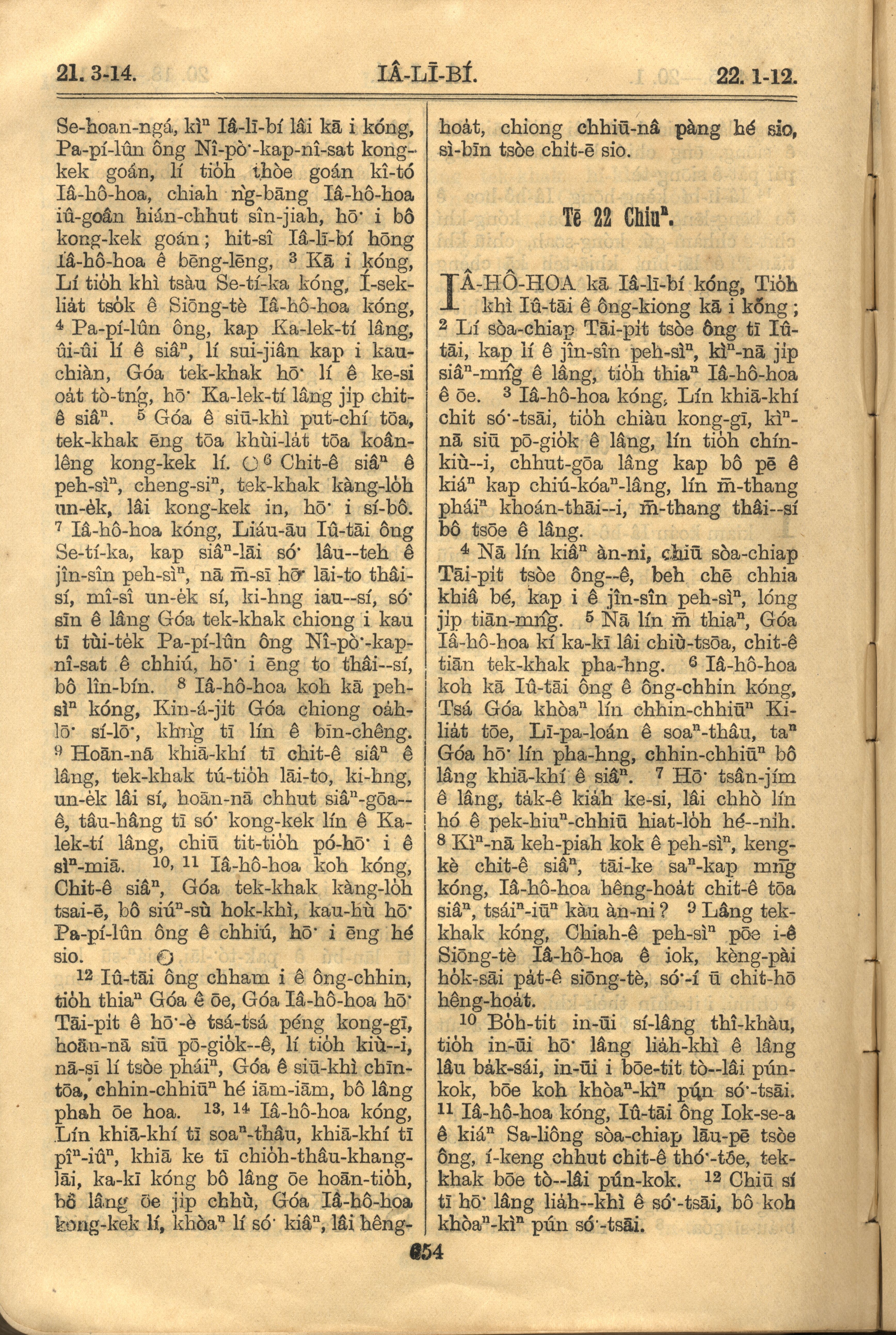 1921年罗马字旧约全书 耶利米书 21 章 3 节到 22 章 12 节