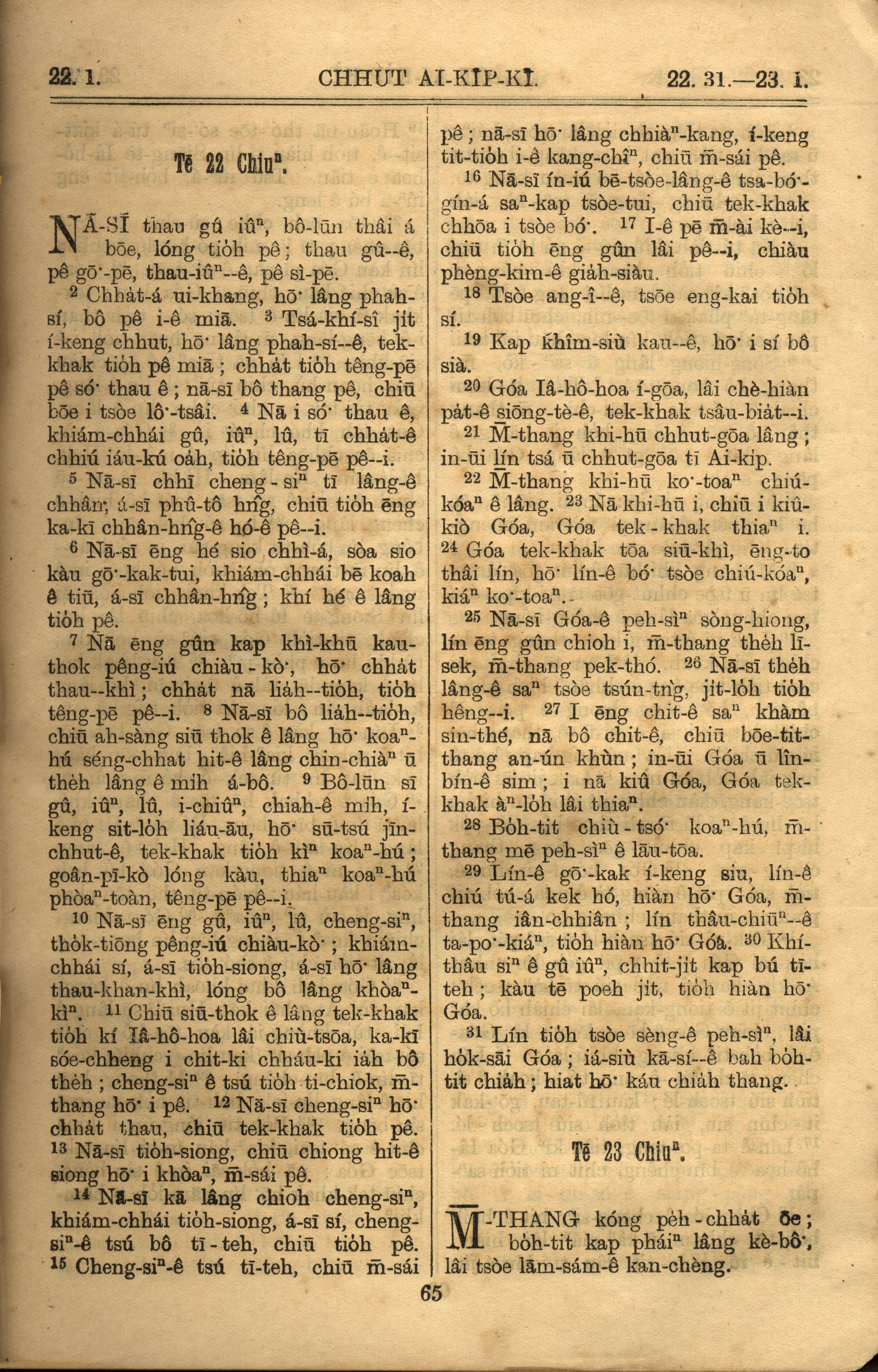 1921年罗马字旧约全书 出埃及记 22 章 1 节到 23 章 1 节