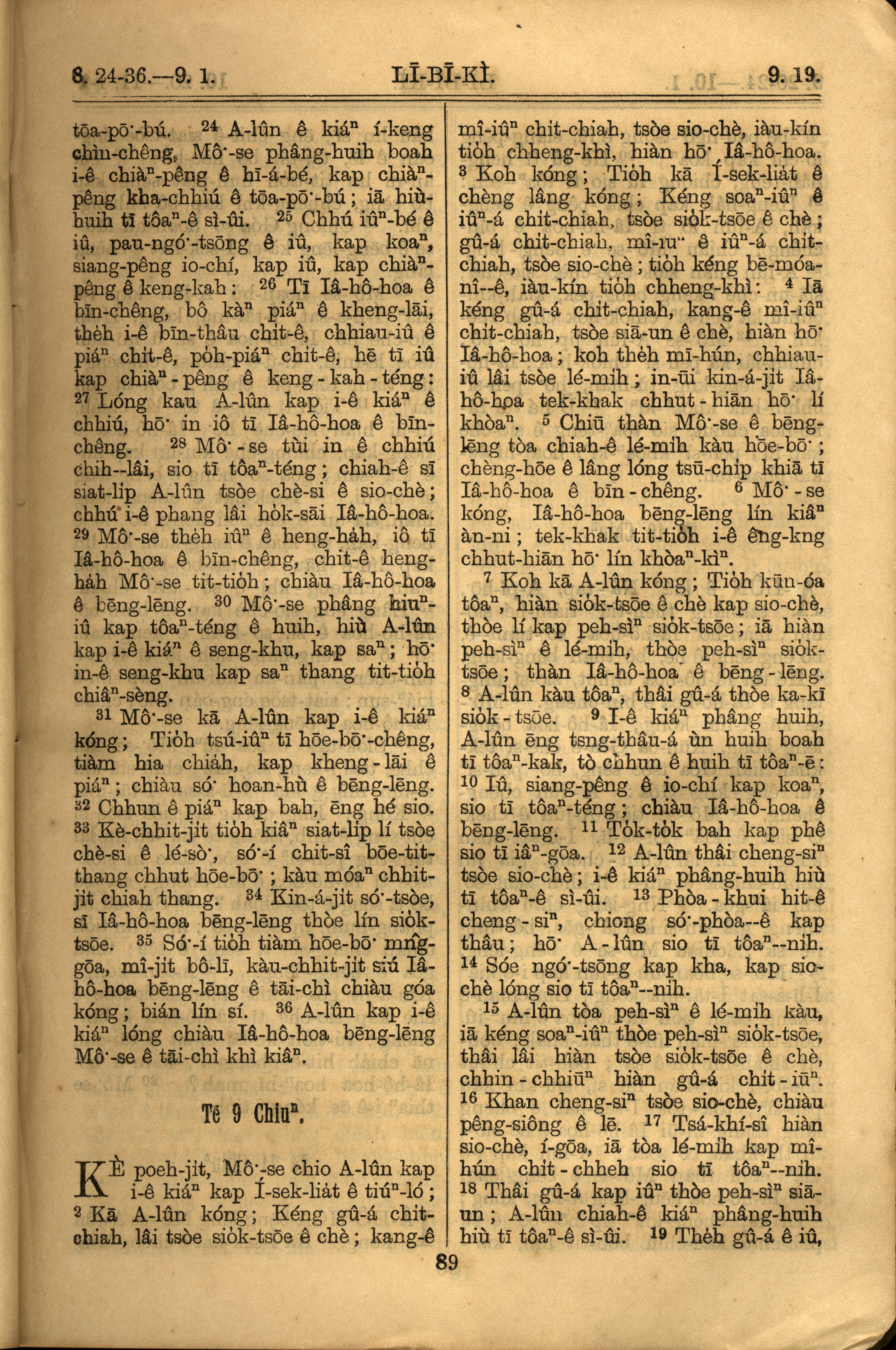 1921年罗马字旧约全书 利未记 8 章 24 节到 9 章 19 节