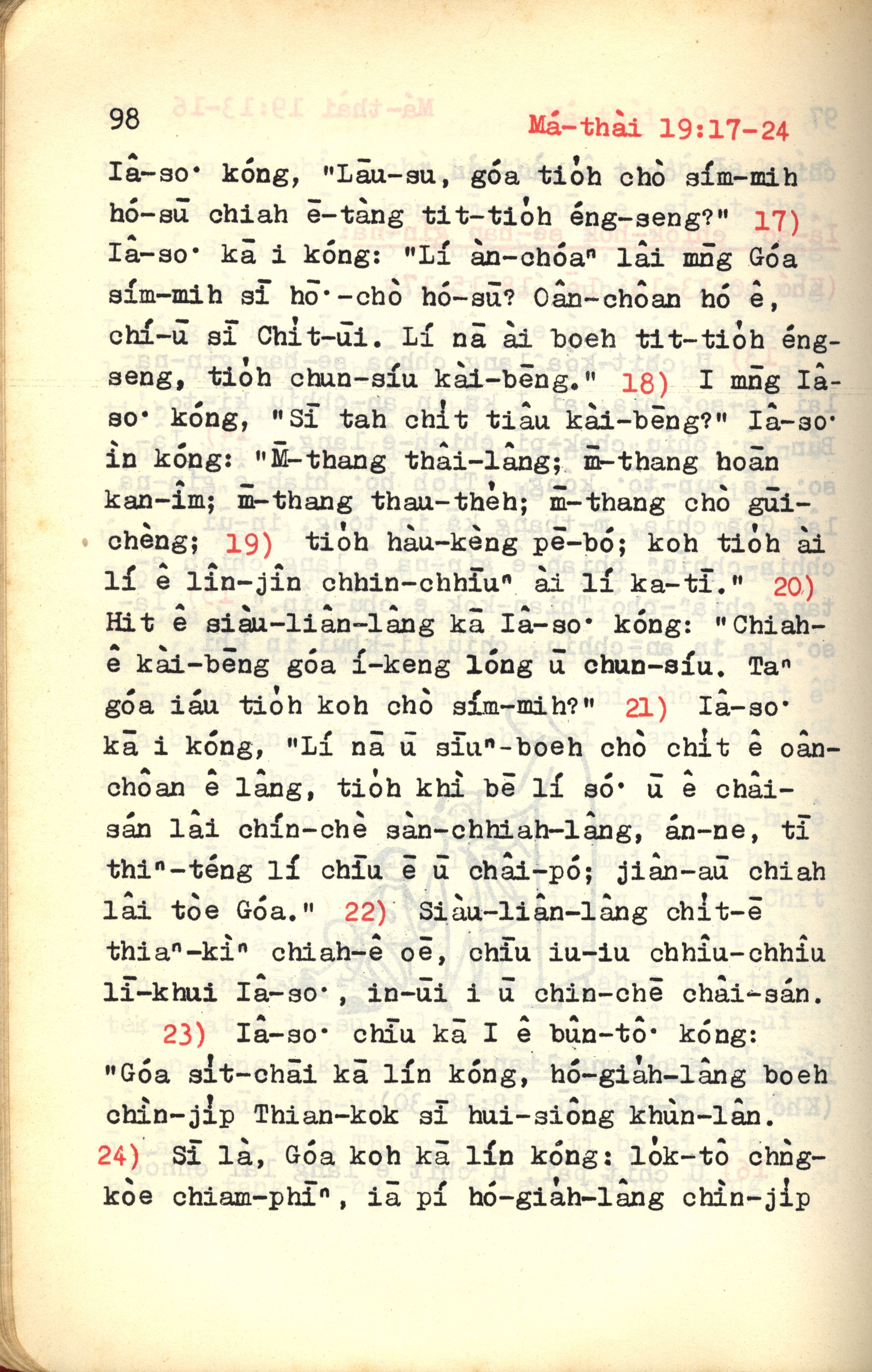 1972年新约红皮圣经 马太福音 19 章 17 节到 19 章 24 节