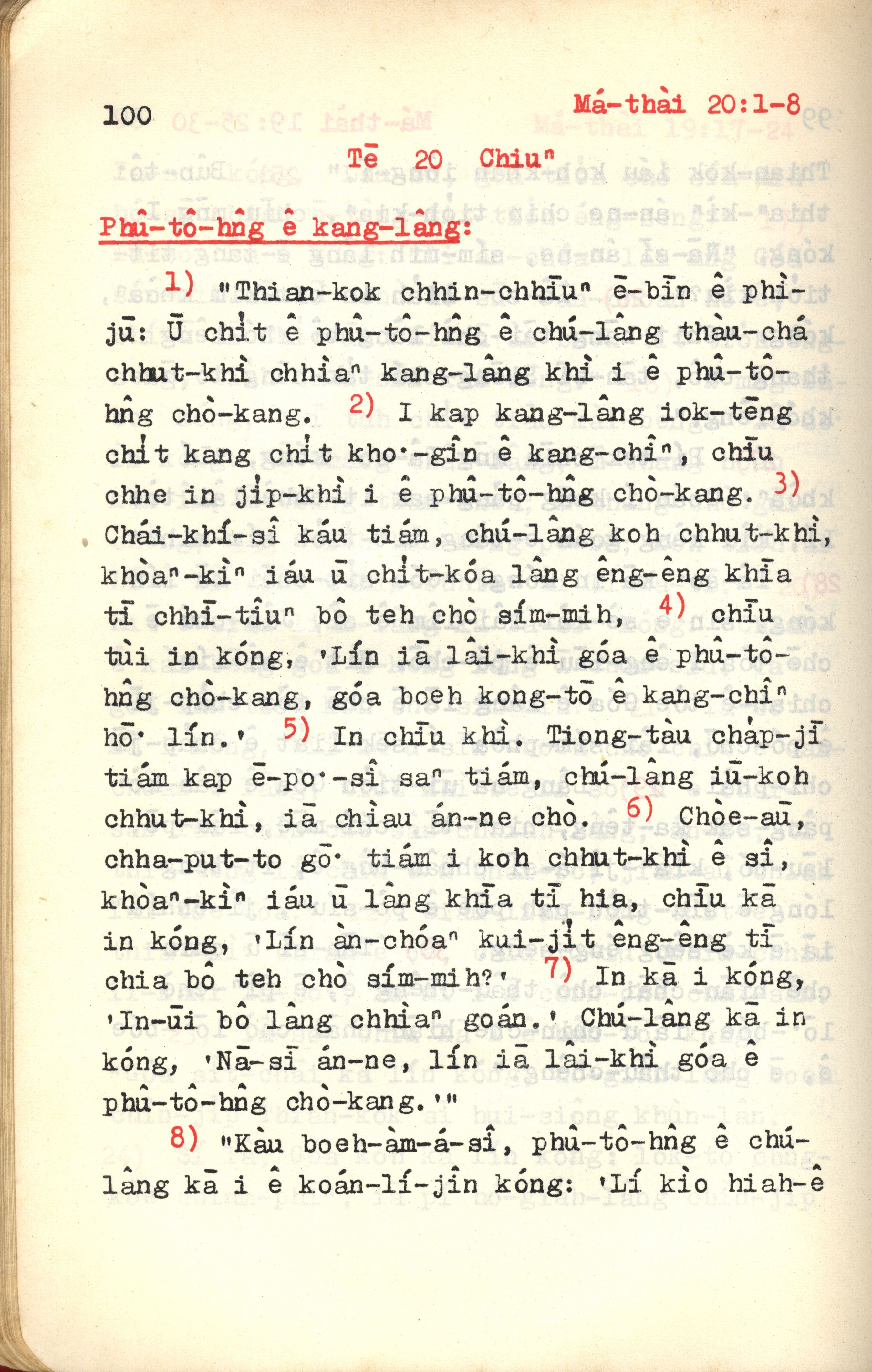 1972年新约红皮圣经 马太福音 20 章 1 节到 20 章 8 节