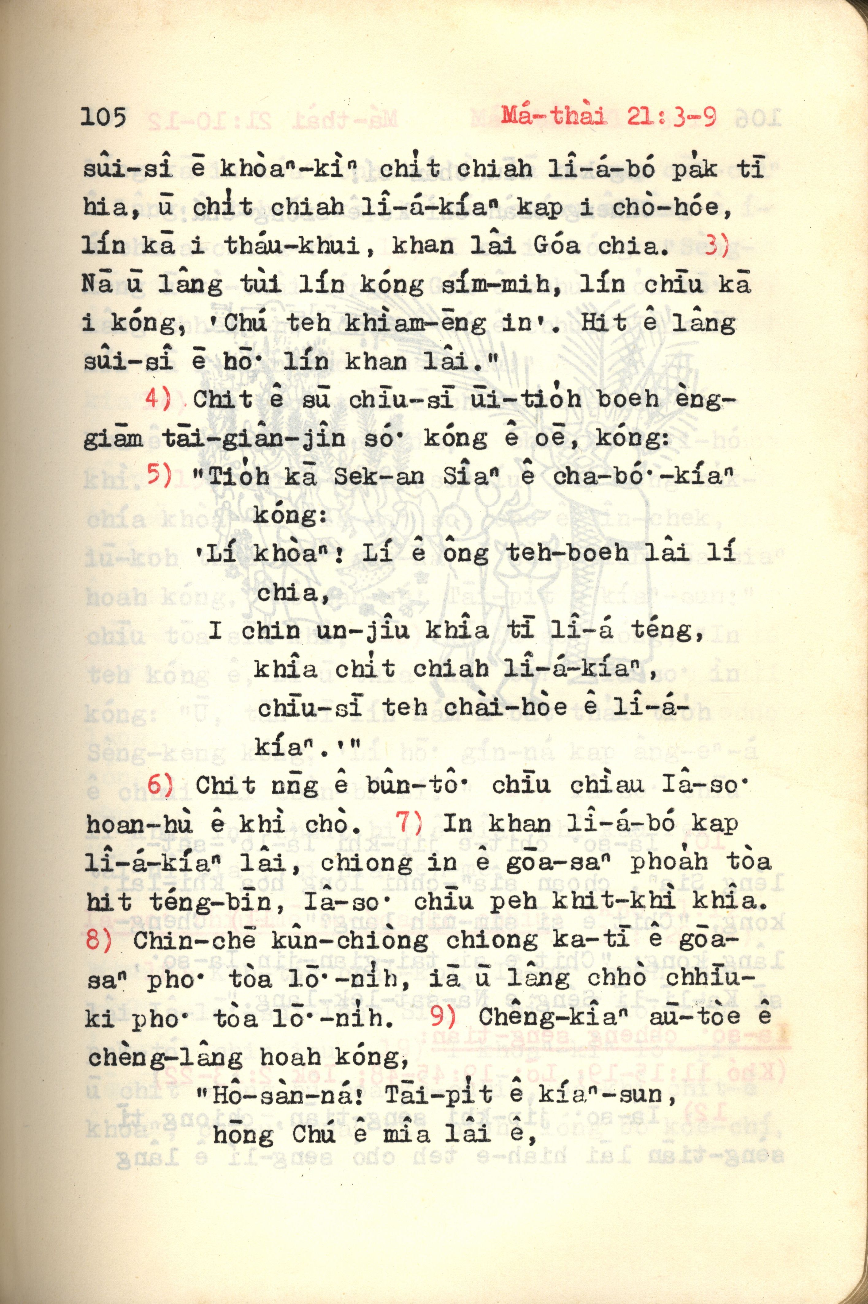 1972年新约红皮圣经 马太福音 21 章 3 节到 21 章 9 节