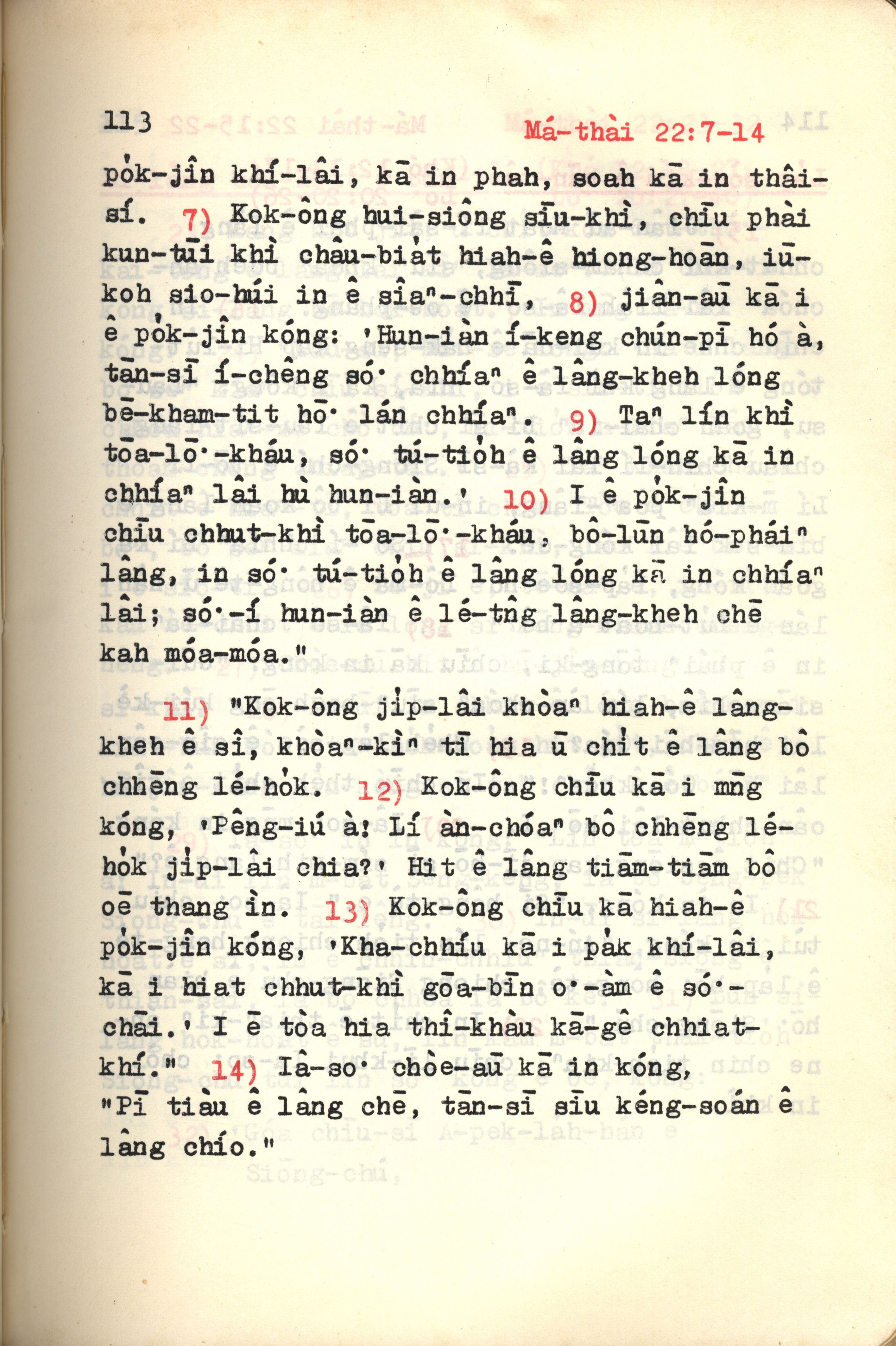 1972年新约红皮圣经 马太福音 22 章 7 节到 22 章 14 节